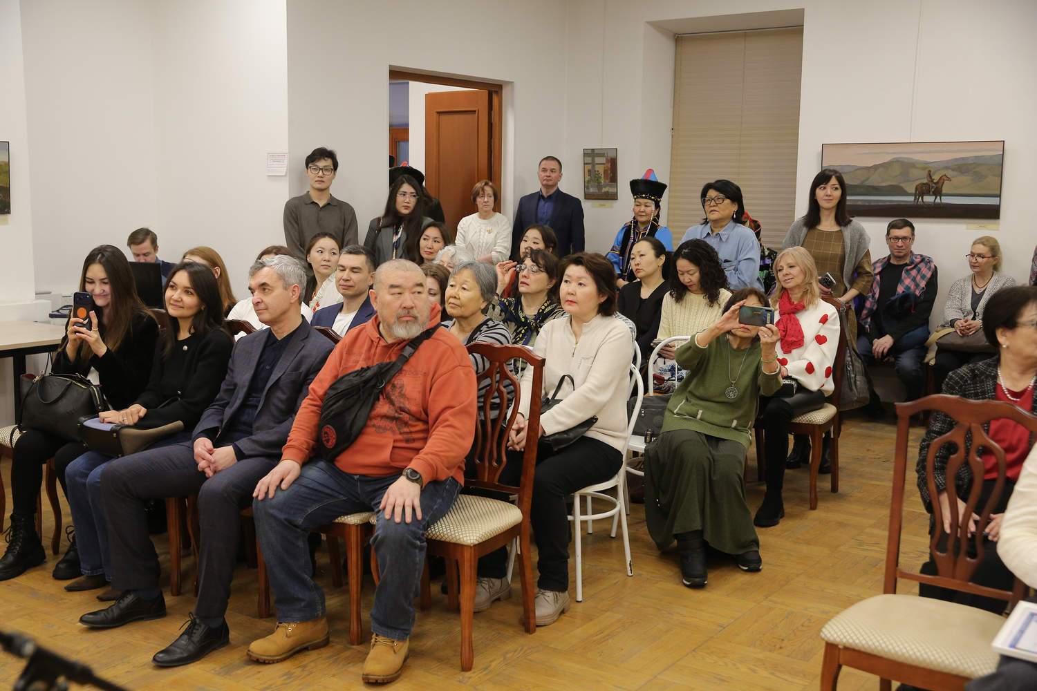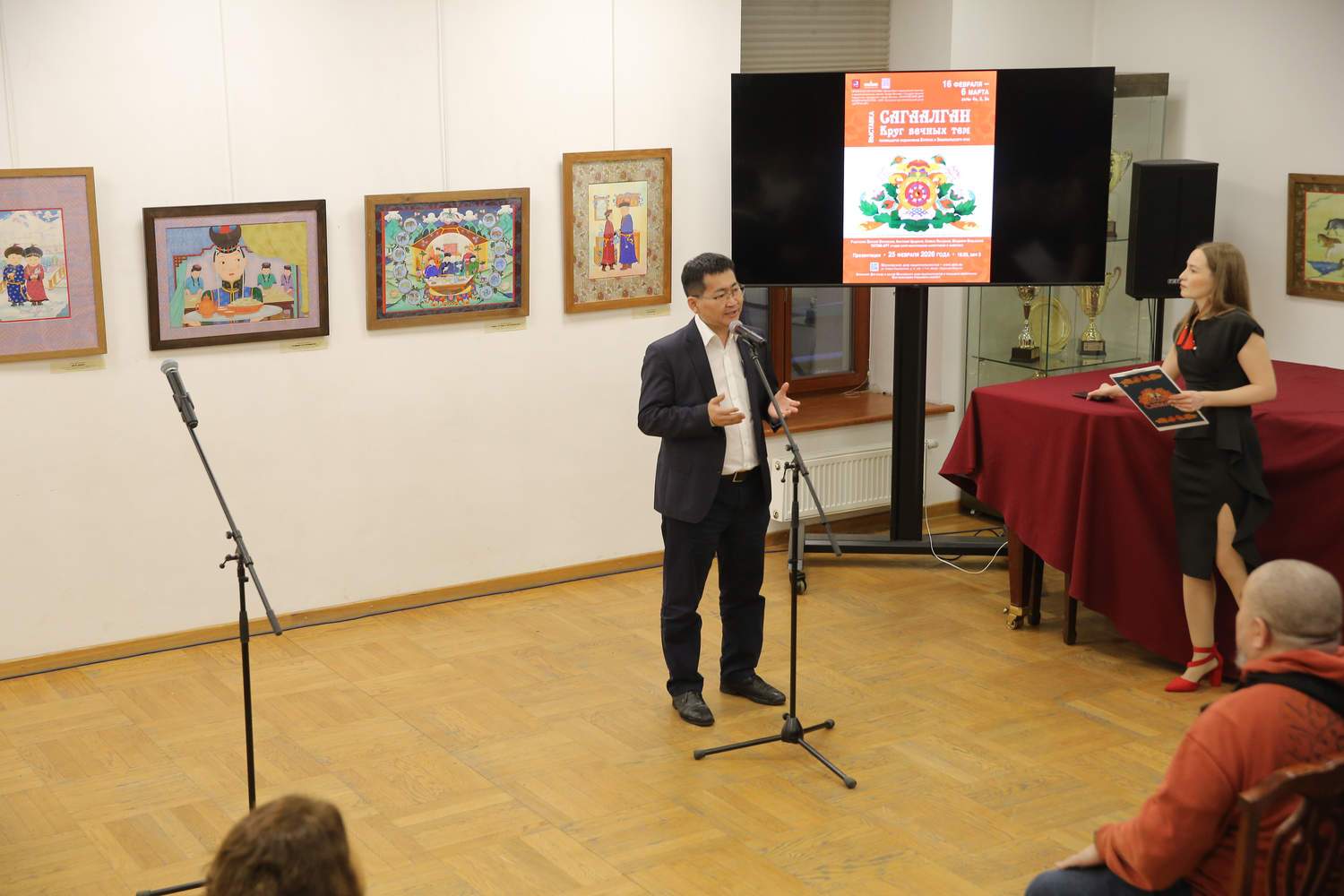 Открыли торжественное мероприятие ведущие Маргарита Морозова и Буянто Бадмаев. С приветственным словом к гостям обратился директор Московского дома национальностей Сергей Сергеевич Ануфриенко. Среди выступавших были также: Будуев Николай Робертович, депутат Государственной Думы; Наталья Олеговна Альтнер, заместитель генерального директора Общероссийской общественно-государственной организации «Ассамблея народов России»; Солбон Лыгденов, художник и кинорежиссер; Владимир Будажапов, талантливый художник, член Союза художников России.