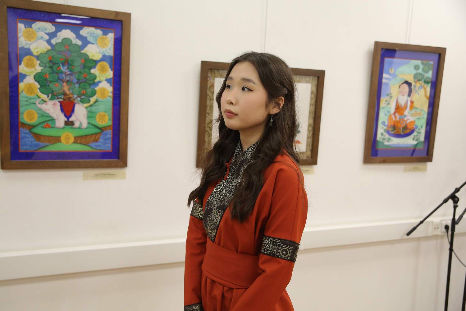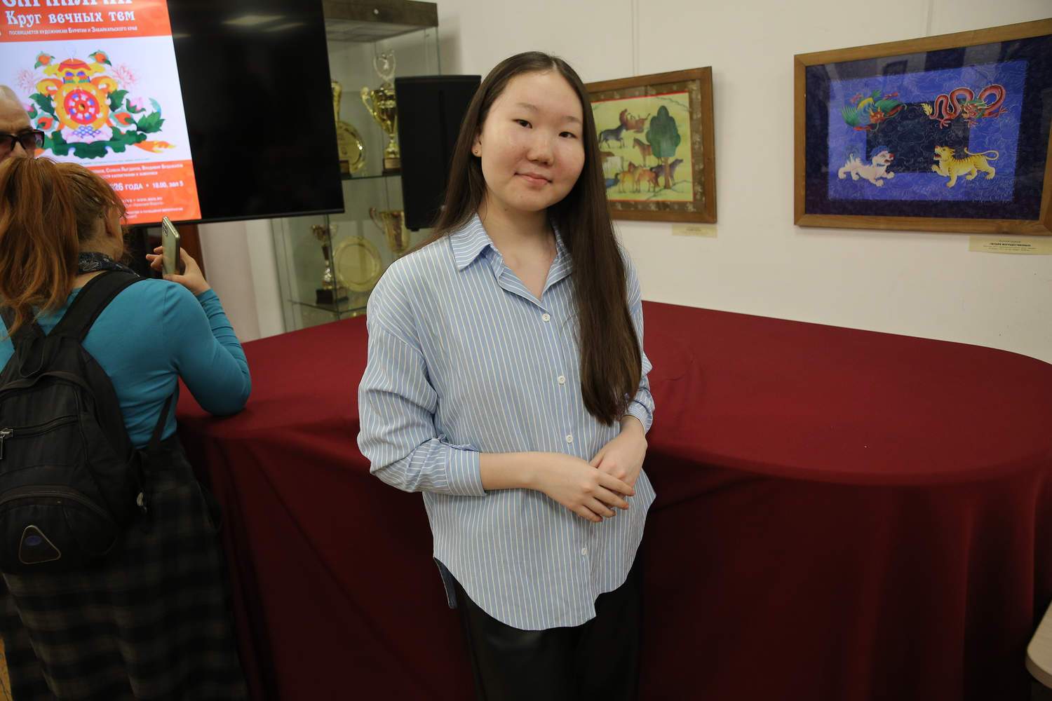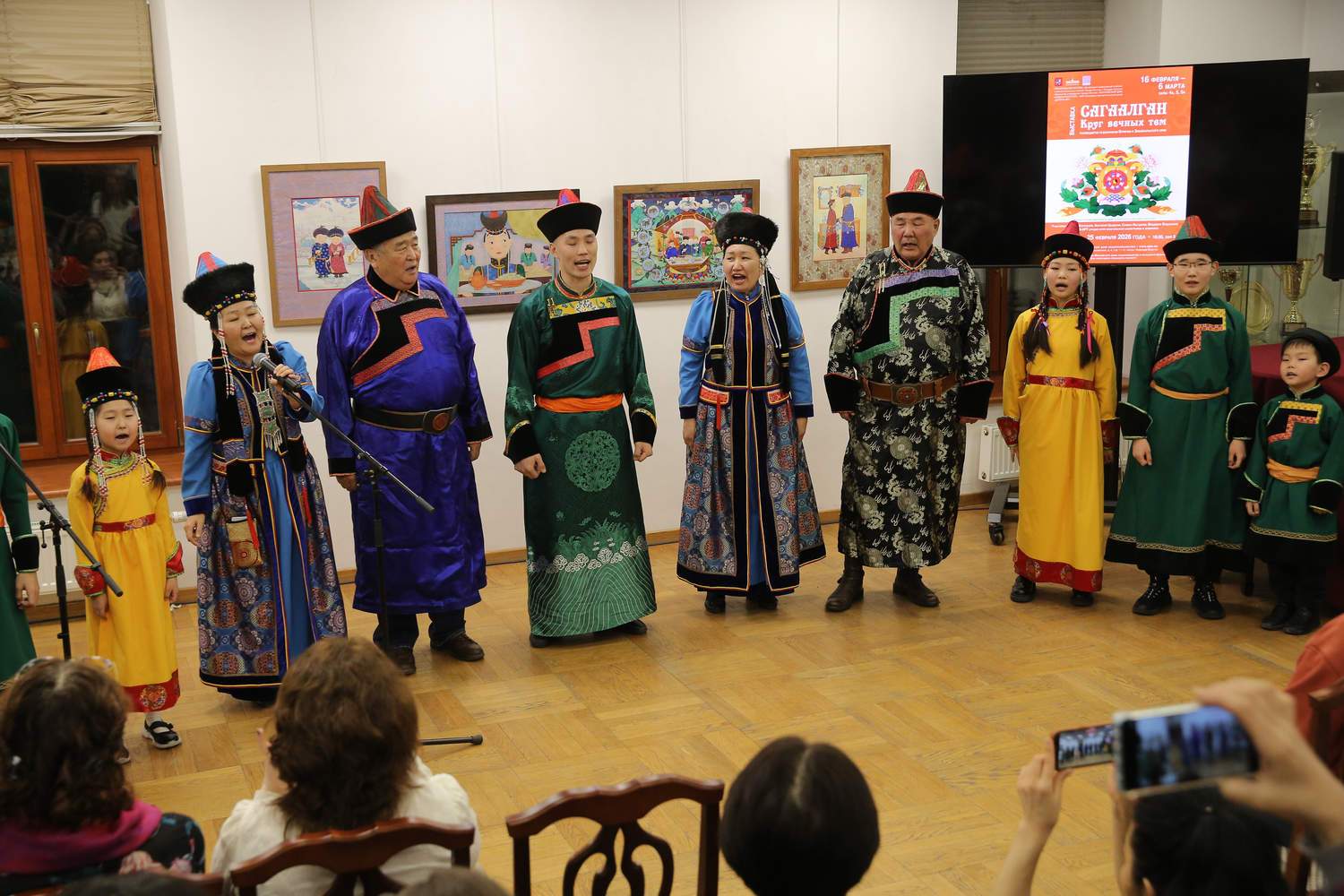 Открытие выставки преобразилось в многосоставное действо, где визуальные искусства вступили в диалог с исполнительскими. Подарком для гостей стали выступления Бурятского этнокультурного центра «НОМИН» (взрослые и детские коллективы), аутентичное звучание ансамбля национальной песни «Аялга» – хранителя древних мелодий и горлового пения. Намжилма Цыбикжапова студентка РАМ им. Гнесина, лауреат 2 степени конкурса исполнителей эстрадной песни «Новая музыка Бурятии» — 2026 исполнила «Гимн, посвященный матери».