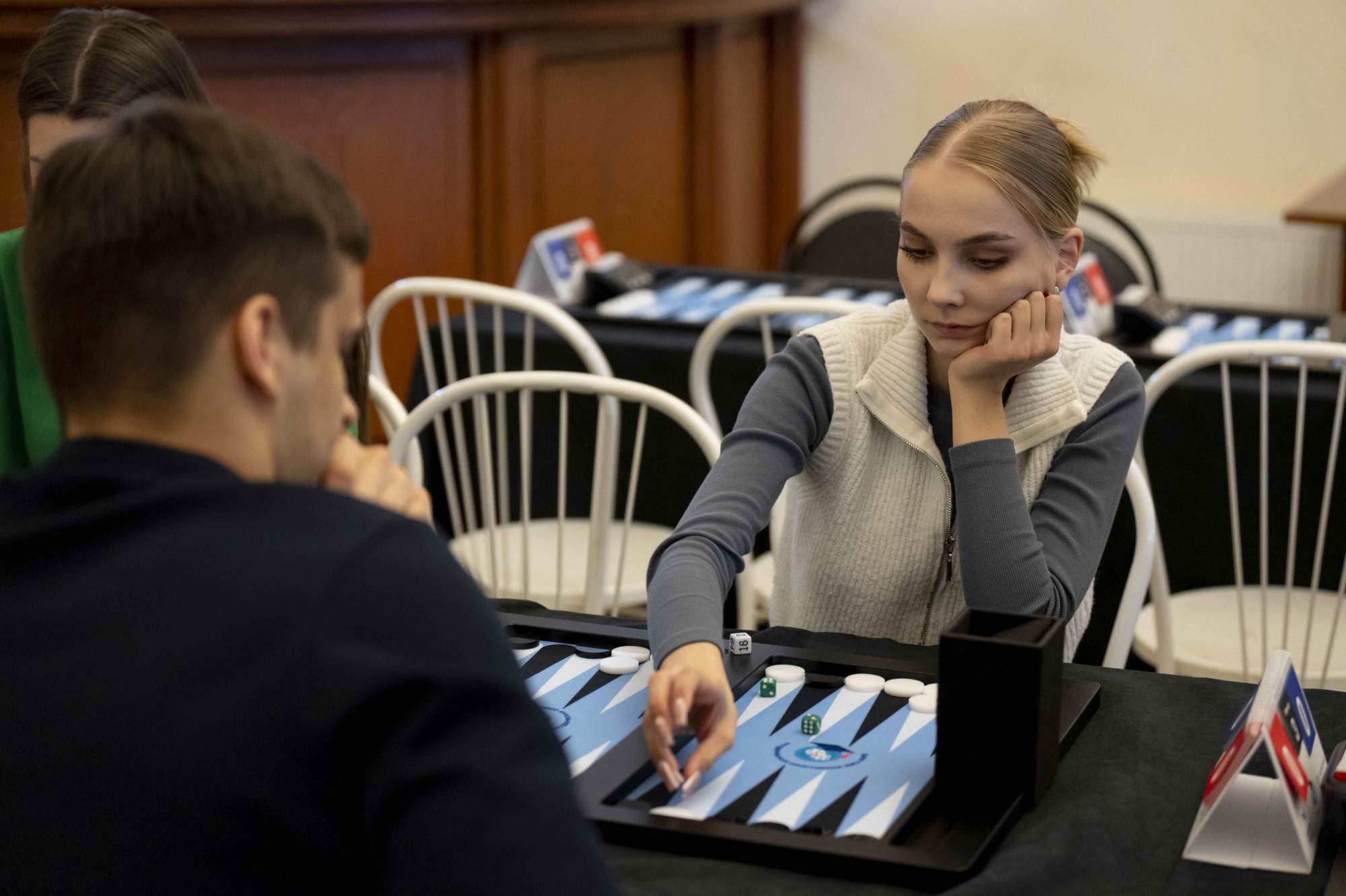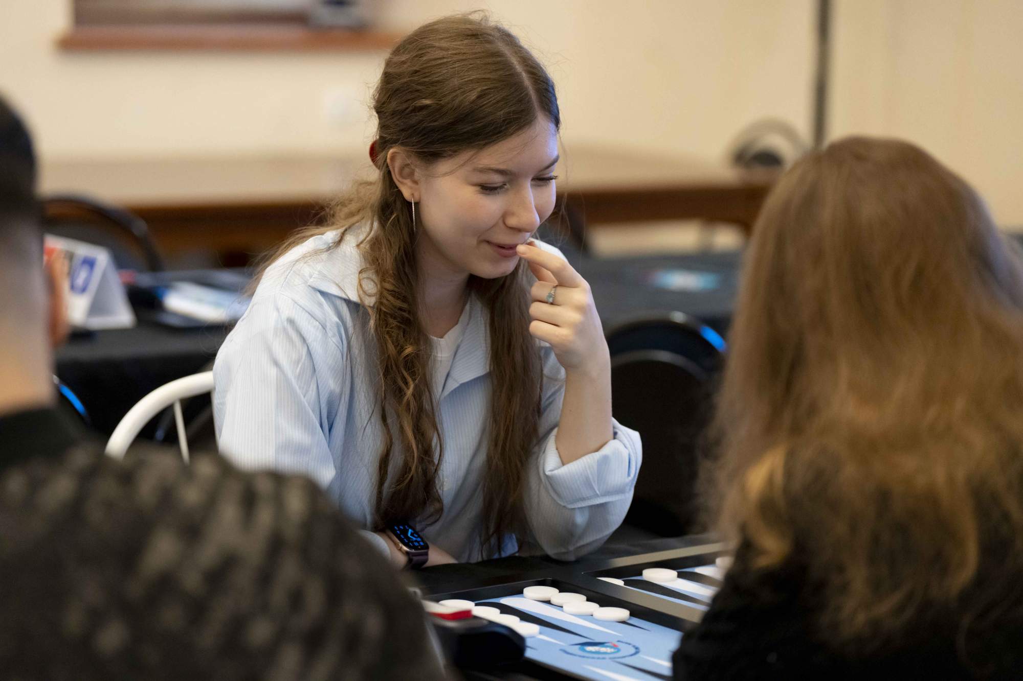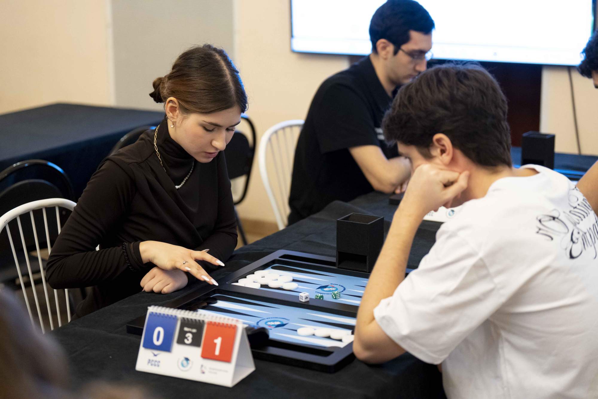 «Нарды» — это проверенная временем классика настольных игр, сочетающая в себе стратегическое мышление, логику, эрудицию и тонкий расчет. На протяжении многих веков она объединяет поколения, оставаясь актуальной и по-настоящему захватывающей. В рамках турнира участники соревновались в дисциплине «длинные нарды», где особенно важны продуманная тактика и умение просчитывать ходы на несколько шагов вперед. С первых партий стало очевидно, что интерес к турниру среди студентов оказался по-настоящему высоким. За игровыми столами царила атмосфера здорового соперничества, спортивного азарта и взаимного уважения. Каждый участник стремился продемонстрировать не только мастерство, но и выдержку, стратегическое мышление и способность принимать решения в напряженной ситуации.