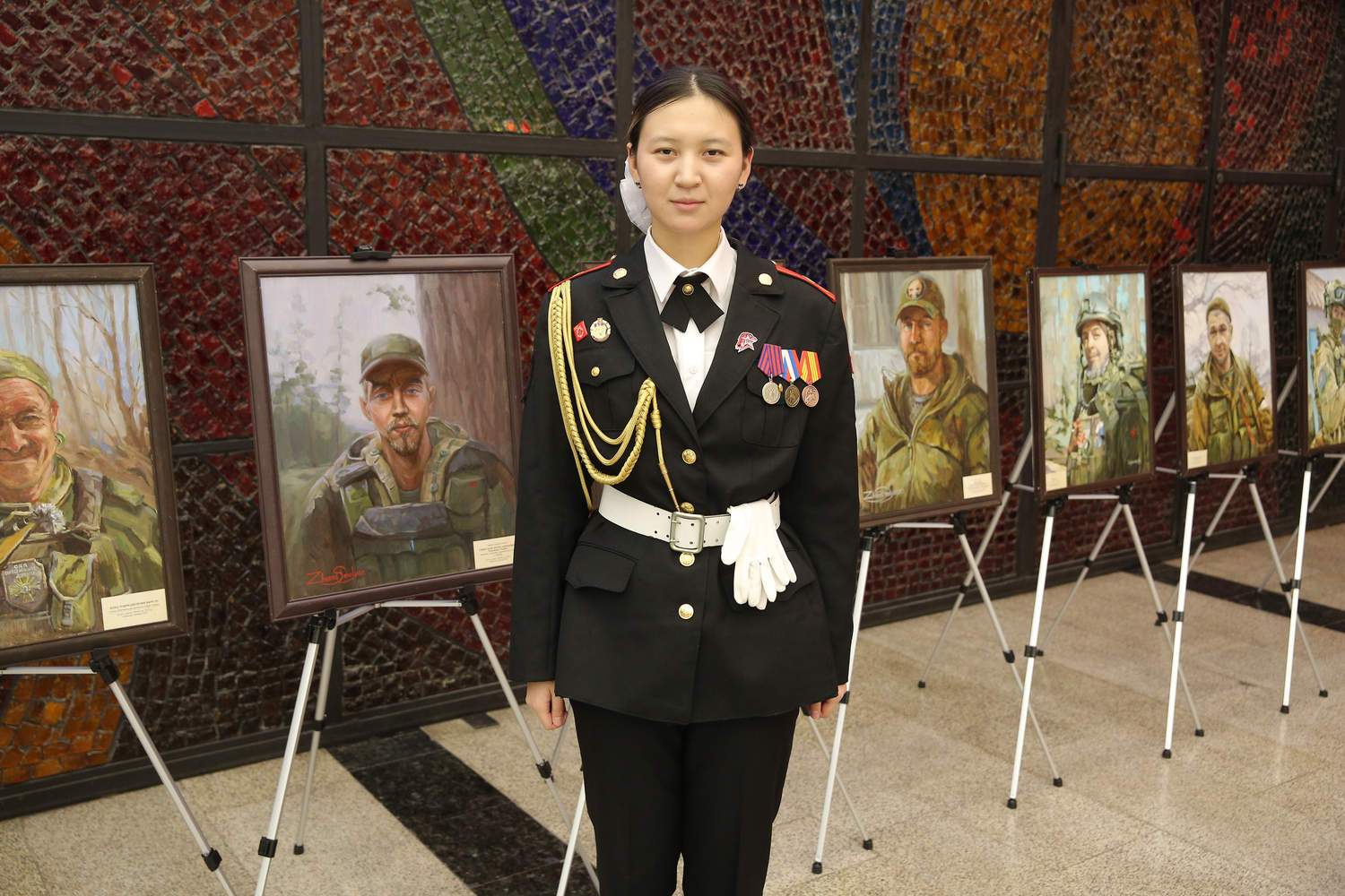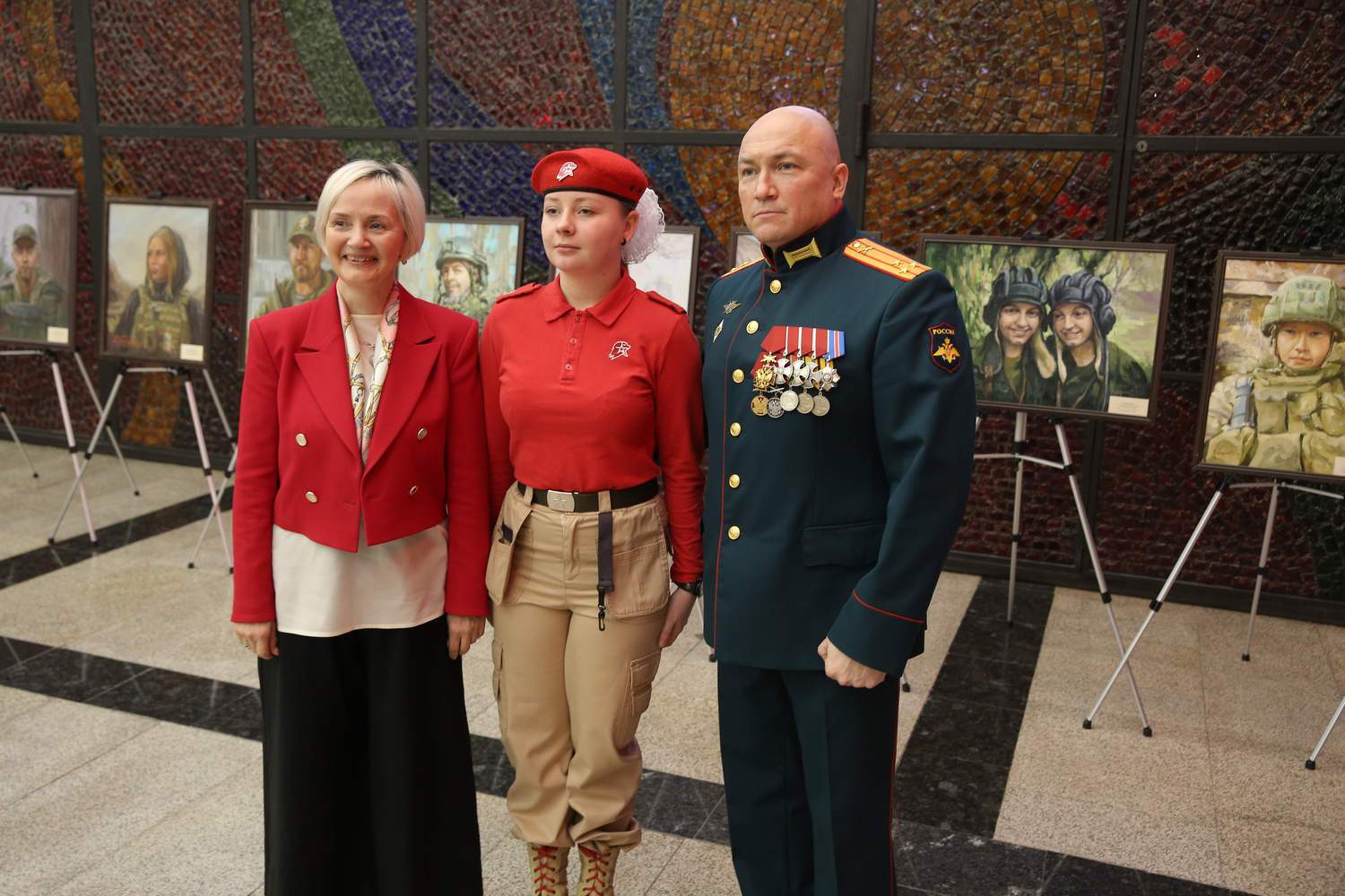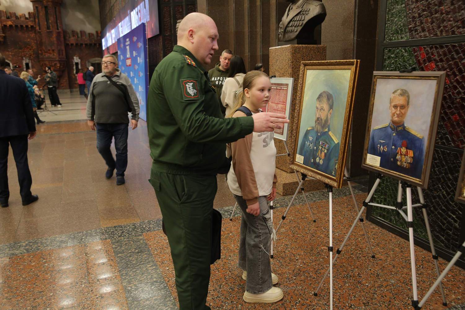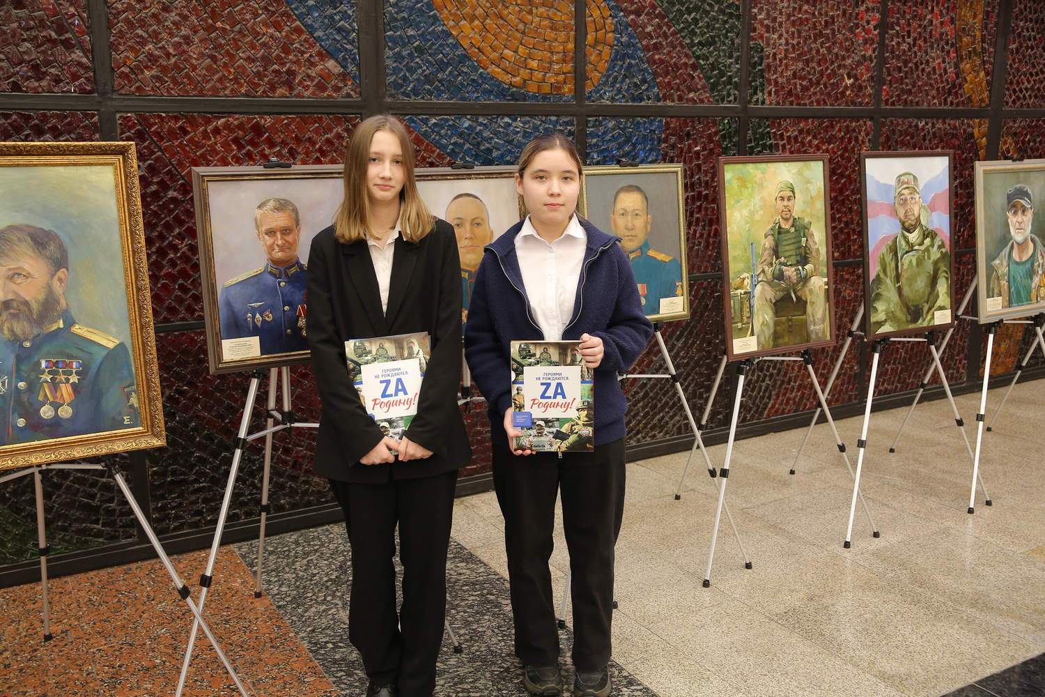 В экспозиции была представлена серия живописных портретов современных героев. Портреты военнослужащих, добровольцев и мобилизованных выполнены профессиональными художниками – участниками проекта с натуры и по мотивам фотографий. Авторы портретов: В.Е. Лукьянов, В.С. Петров, Ж.Ю. Смоляр, Д.П. Костылев, З.А. Ведешина, В.В. Утехина, М.Д. Егорова, Е.Н. Дедова.