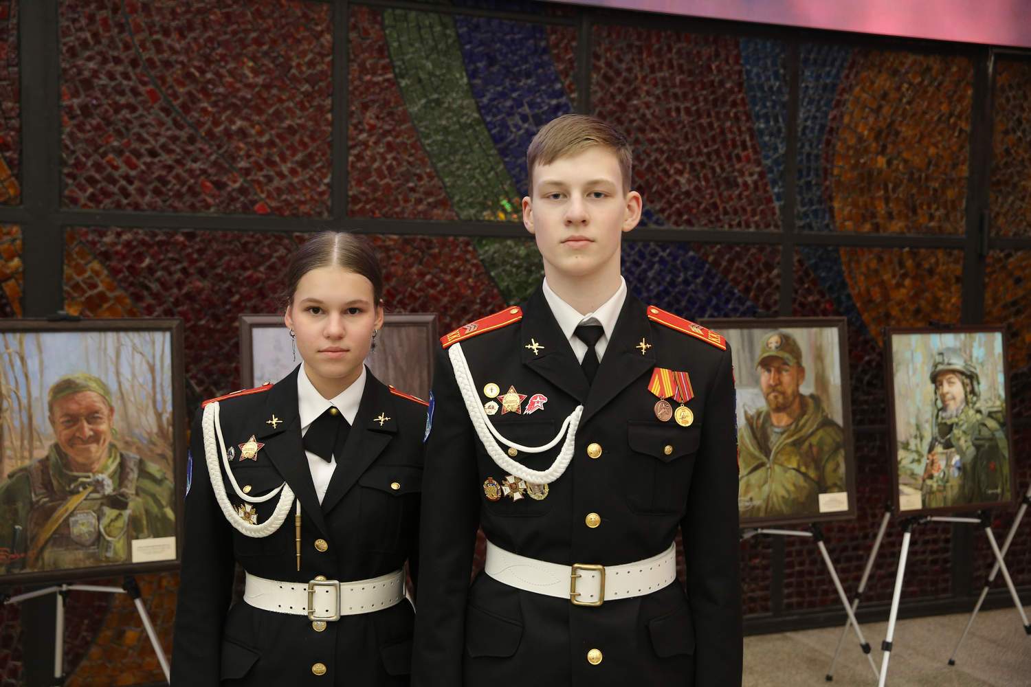 В экспозиции была представлена серия живописных портретов современных героев. Портреты военнослужащих, добровольцев и мобилизованных выполнены профессиональными художниками – участниками проекта с натуры и по мотивам фотографий. Авторы портретов: В.Е. Лукьянов, В.С. Петров, Ж.Ю. Смоляр, Д.П. Костылев, З.А. Ведешина, В.В. Утехина, М.Д. Егорова, Е.Н. Дедова.