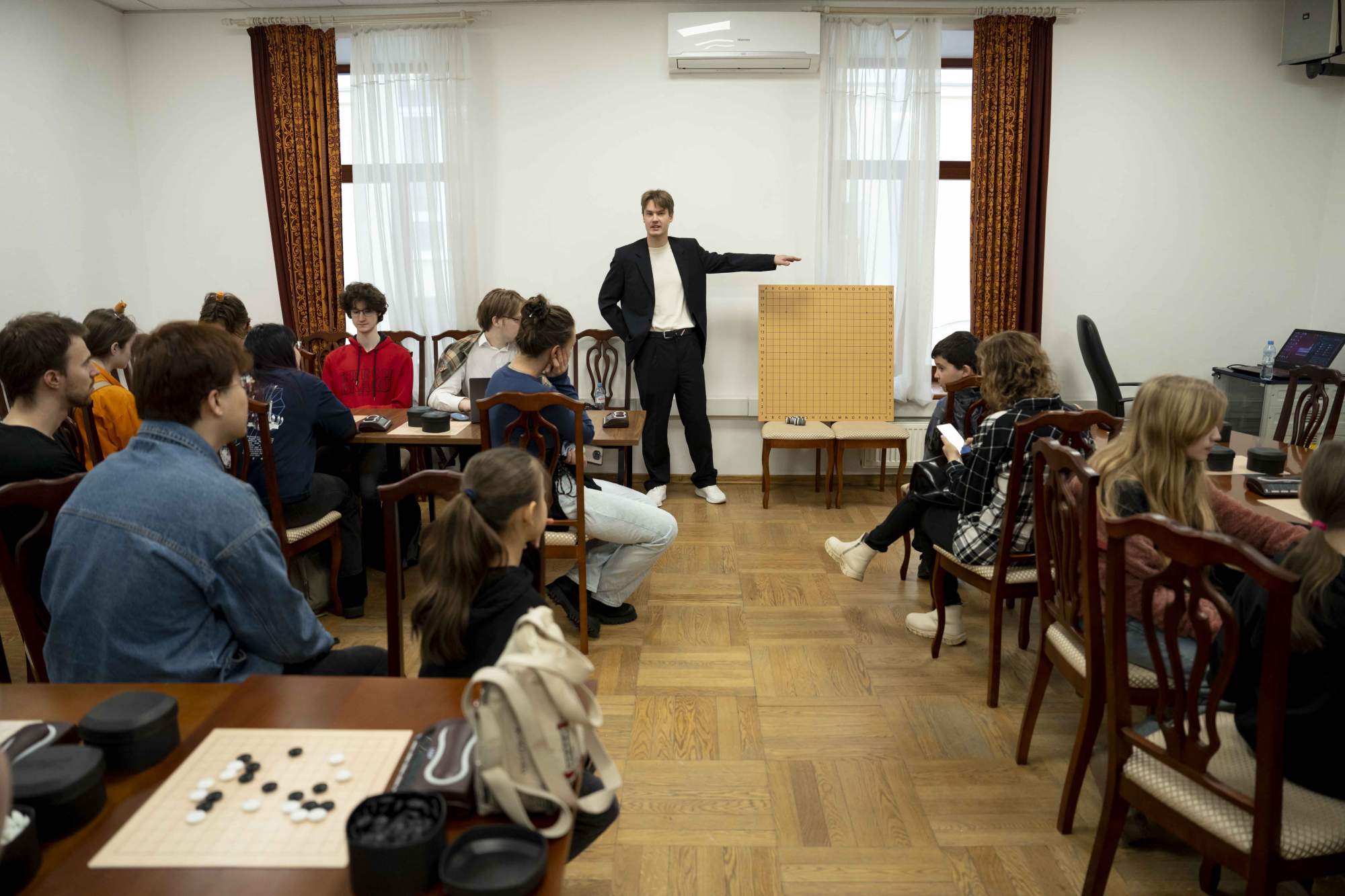 Член Московской Федерации Го С.К. Мезин в своем выступлении отметил, что  Го — логическая настольная игра с глубоким стратегическим содержанием, возникшая в Древнем Китае, до XIX века культивировалась исключительно в Восточной Азии, в XX веке распространилась по всему миру. По общему числу игроков — одна из самых распространённых настольных игр в мире. Входит в число пяти базовых дисциплин Всемирных интеллектуальных игр.