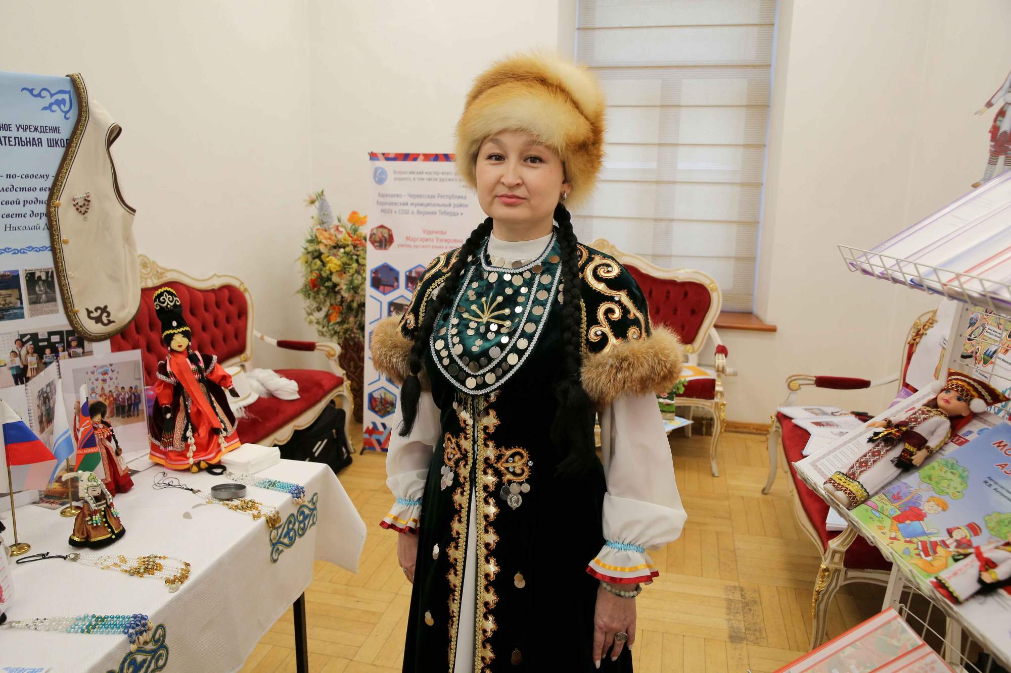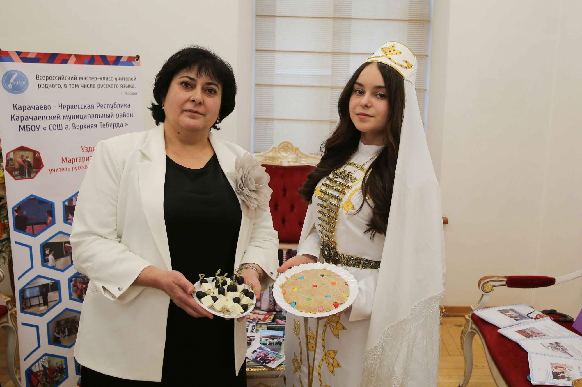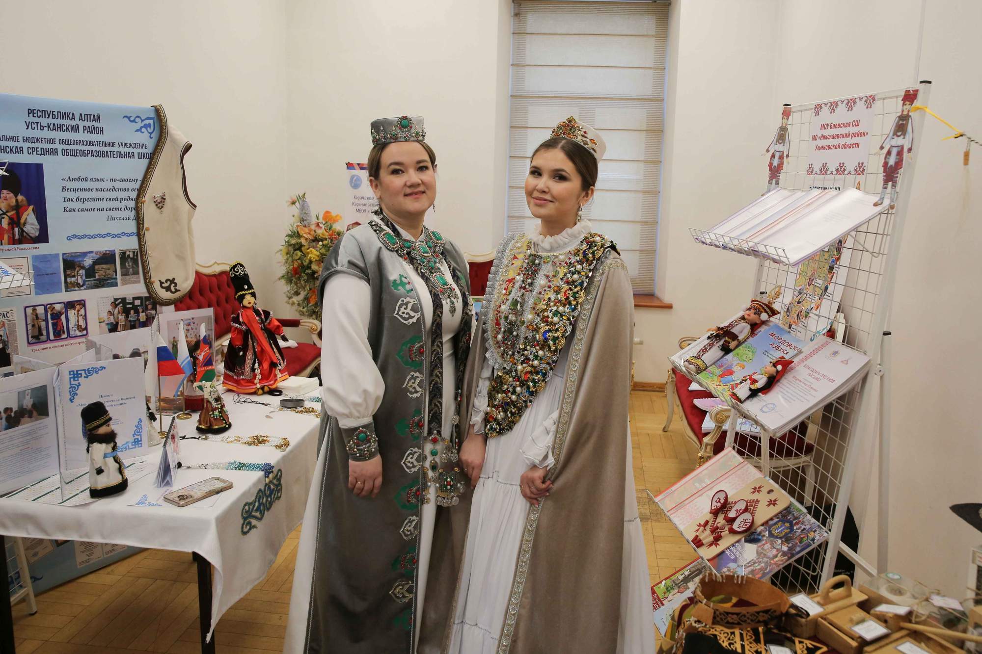 Основное содержание мероприятия было посвящено конкурсным испытаниям: участники провели мастер-классы в формате элементов уроков по русскому и другим родным языкам. Яркой и содержательной частью программы стала демонстрация национальных костюмов, где каждый выступающий представил традиционный наряд, дав подробное объяснение его культурного и символического значения в контексте народных традиций. Одновременно с конкурсными выступлениями работала выставка, на которой были представлены методические материалы, авторские разработки к урокам, а также предметы материальной культуры народов России, подготовленные и привезенные участниками из регионов страны.