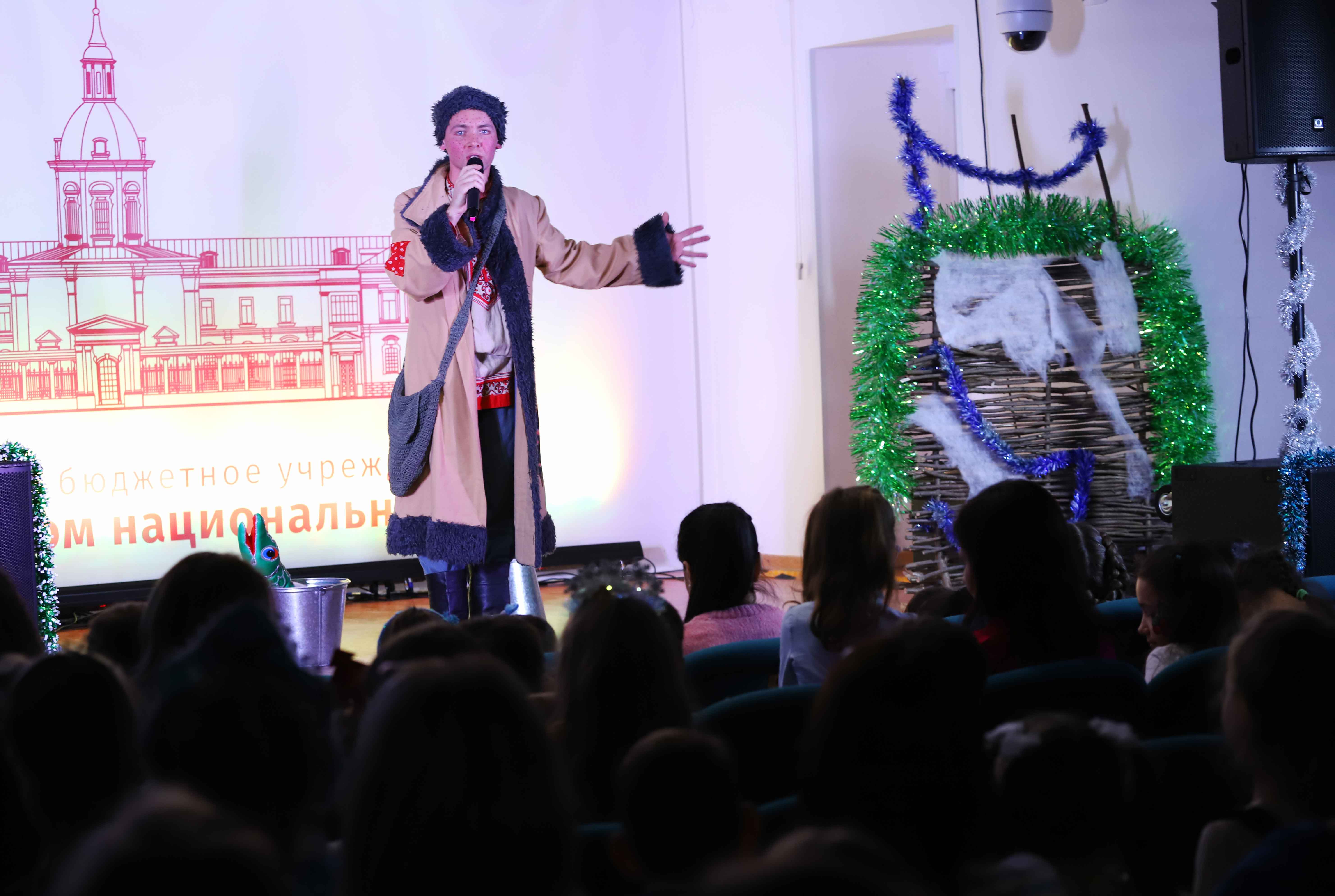 В «Московском доме национальностей» прошло новогоднее представление по мотивам сказок народов России, организованные специально для юных зрителей, детей представителей НОО, НКА, землячеств и общественных организаций города Москвы. Целью данного мероприятия является: формирование дружеских отношений между детьми; воспитание в детях положительных качеств характера и чувства уважения к культуре и истории России; создание благоприятной атмосферы для расширения представлений о традициях и обычаях празднования Нового года. Юных гостей ждала увлекательная, захватывающая праздничная программа, в течение которой проходили разнообразные развлекательные игры, конкурсы: «шоу мыльных пузырей», жонглирование, фокусы и аквагрим. А также мастер-классы по изготовлению «куклы‑оберега из лыка», «свечей из вощины», «роспись деревянных изделий».