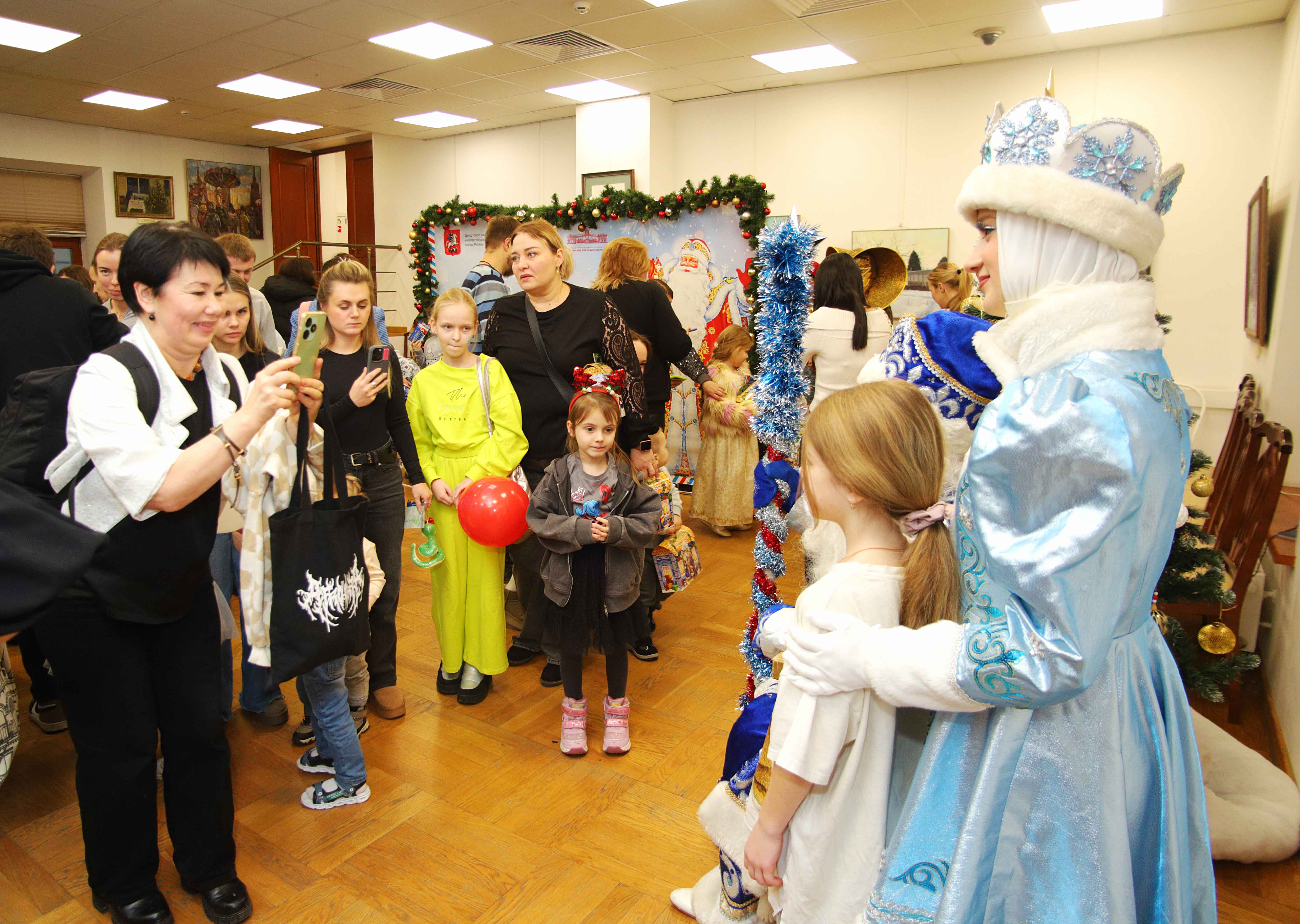 Разноцветные, сверкающие гирлянды и ярко украшенная ёлочка принесли детям ощущение чуда. Великолепным событием новогодней ёлки стала детская музыкально‑интерактивная сказка «Новогодние приключения Емели» в исполнении вокального ансамбля «Русы» Фольклорного центра «Москва». Не только дети, но и их родители были полностью поглощены потрясающим новогодним спектаклем. Аниматоры и актеры театра завлекли гостей МДН в интересную интерактивную программу, наполненную новогодними приключениями. Сказочные герои увлекали детей в волшебный мир сказки и атмосферу приключений. Маленькие гости были в восторге от встречи с Дедом Морозом и его верной помощницей Снегурочкой, а также с Емелей, Бабой Ягой, сказочной лягушкой, символом года Змеёй и другими удивительными сказочными персонажами. После представления все дети получили долгожданные подарки от Деда Мороза. Дети зарядились праздничным настроением и ощущением волшебства. Юные зрители в возрасте от 3-х до 12 лет посетили новогоднюю ёлку в «Московском доме национальностей». Свет в глазах детей искрился от счастья, все они стремились принять участие в мастер-классах и конкурсах. Праздник получился очень весёлым и радостным, оставил много приятных впечатлений и эмоций, наполнил сердца детей и взрослых радостью и счастьем.