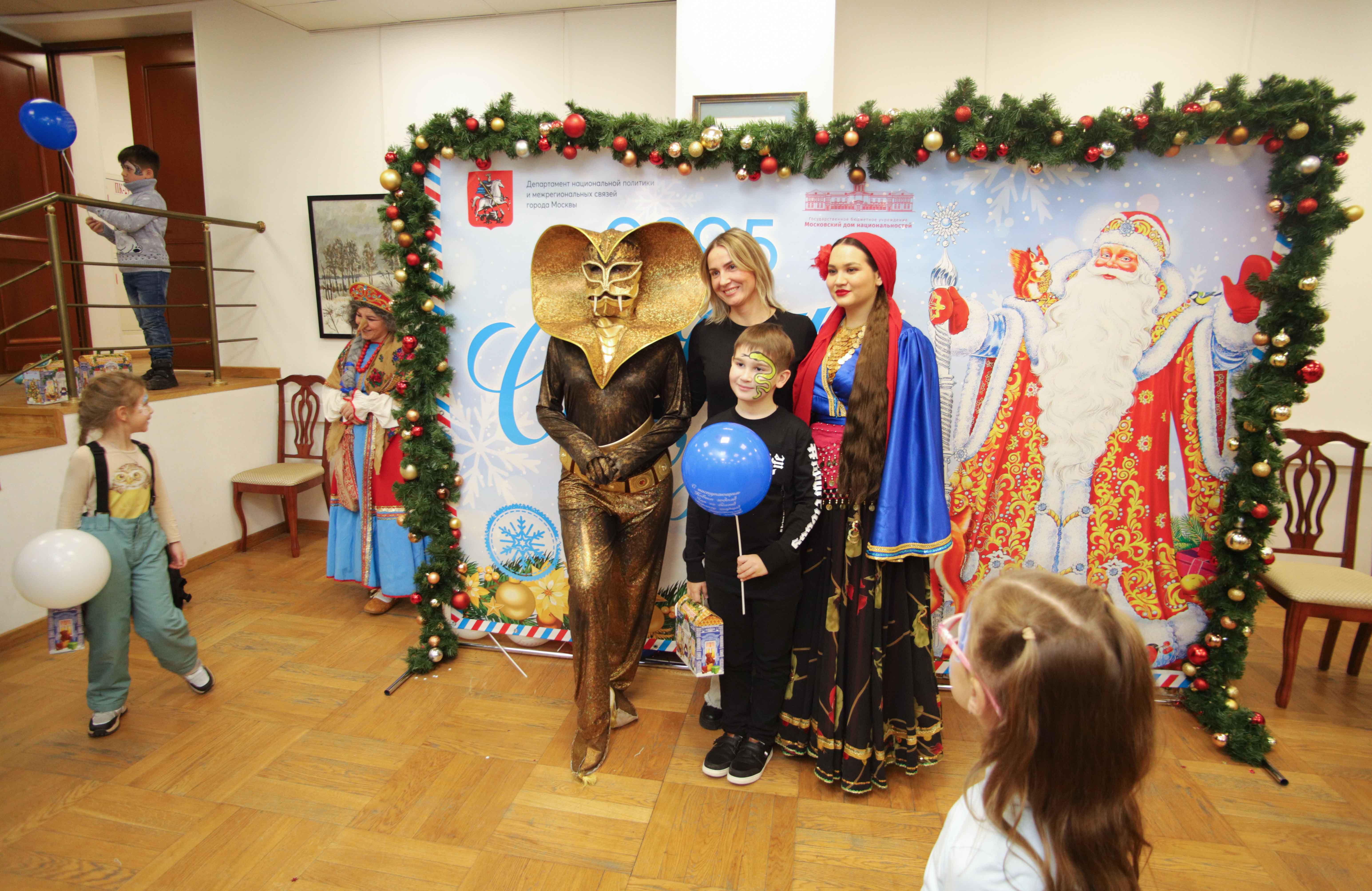 В «Московском доме национальностей» прошло новогоднее представление по мотивам сказок народов России, организованные специально для юных зрителей, детей представителей НОО, НКА, землячеств и общественных организаций города Москвы. Целью данного мероприятия является: формирование дружеских отношений между детьми; воспитание в детях положительных качеств характера и чувства уважения к культуре и истории России; создание благоприятной атмосферы для расширения представлений о традициях и обычаях празднования Нового года. Юных гостей ждала увлекательная, захватывающая праздничная программа, в течение которой проходили разнообразные развлекательные игры, конкурсы: «шоу мыльных пузырей», жонглирование, фокусы и аквагрим. А также мастер-классы по изготовлению «куклы‑оберега из лыка», «свечей из вощины», «роспись деревянных изделий».