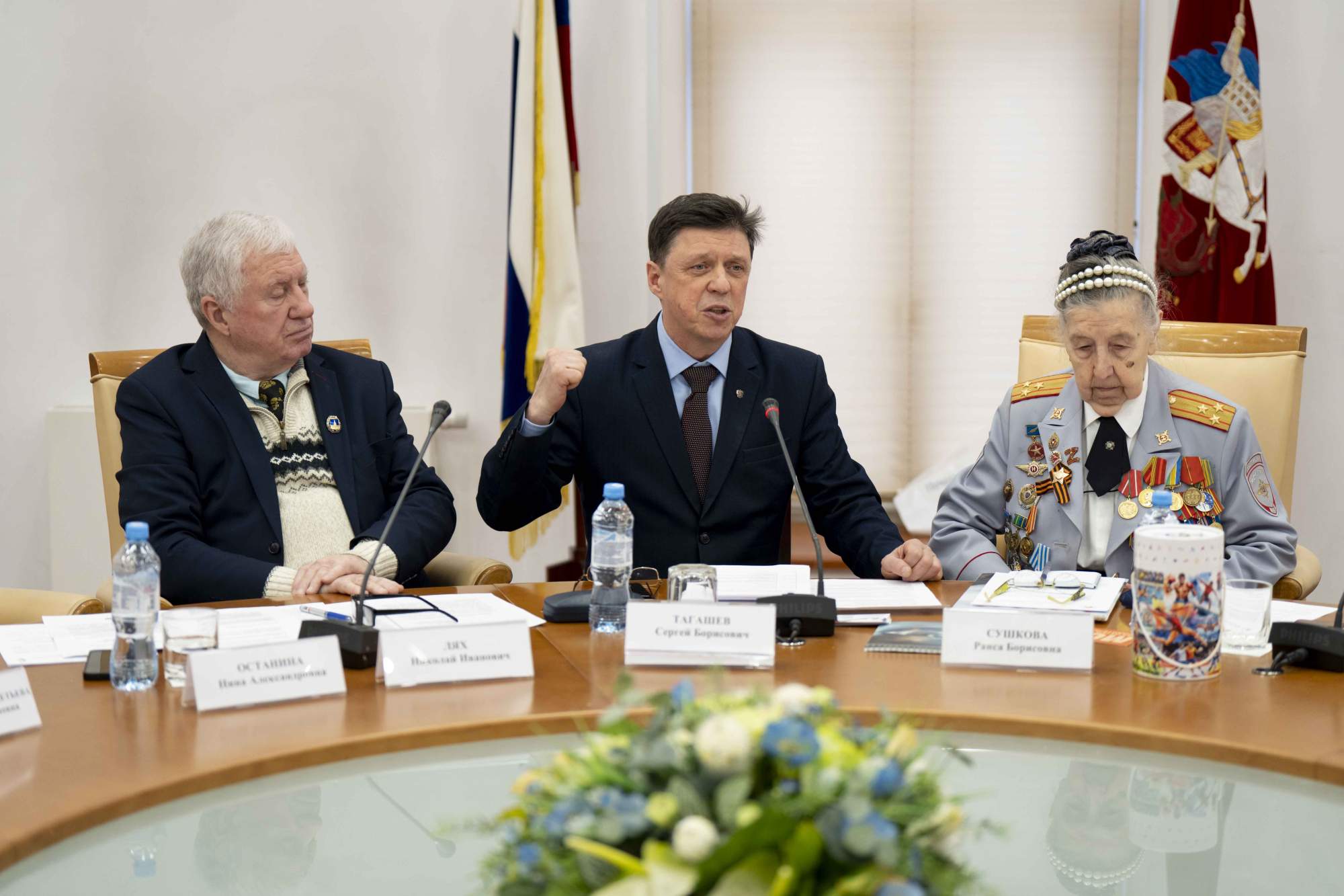С приветственными словами к участникам обратились: Лях Николай Иванович, председатель Комиссии по защите традиционных российских духовно-нравственных ценностей, культуры и исторической памяти при Совете по делам национальностей при Правительстве Москвы; Куклачёв Юрий Дмитриевич, художественный руководитель «Театр кошек», советский и российский артист цирка, народный учитель России (дистанционно); Краев Дмитрий Александрович, предприниматель компании «Красиво красим».
