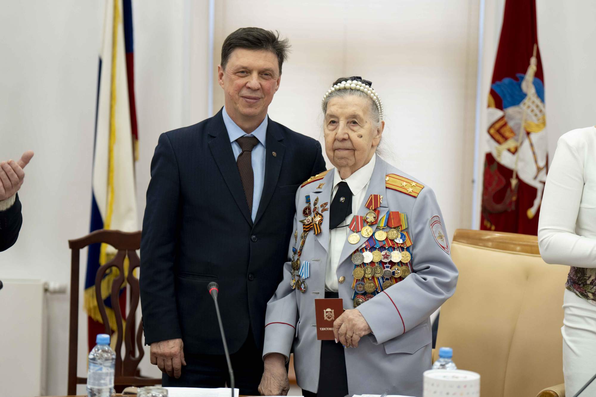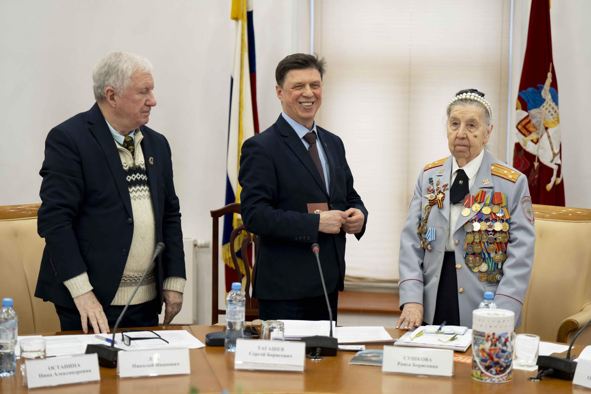 Работа круглого стола началась с торжественного поздравления с 90-летним юбилеем Сушковой Раисы Борисовны, участницы Великой Отечественной войны, полковника милиции в отставке, мастера спорта по легкой атлетике.