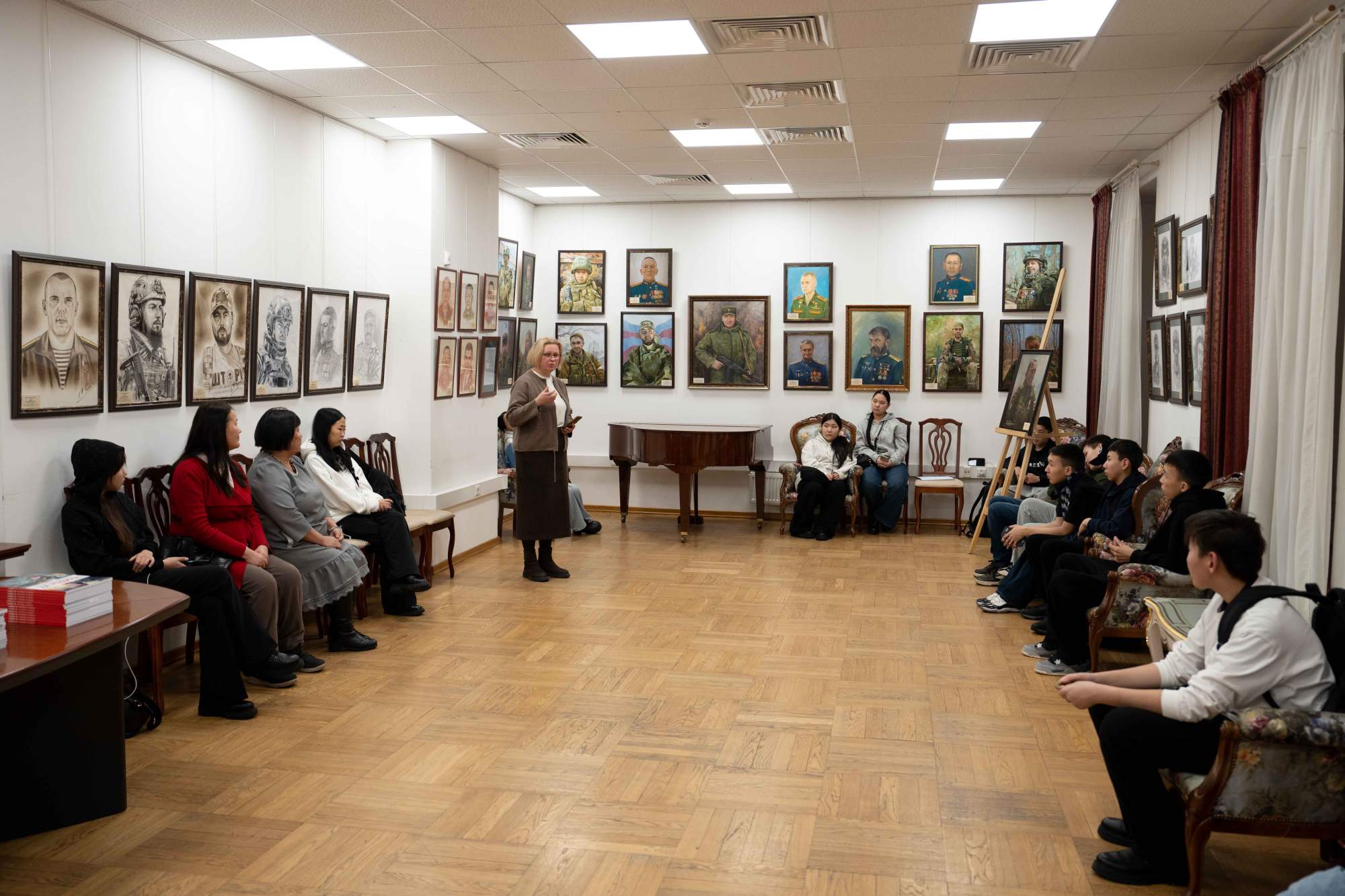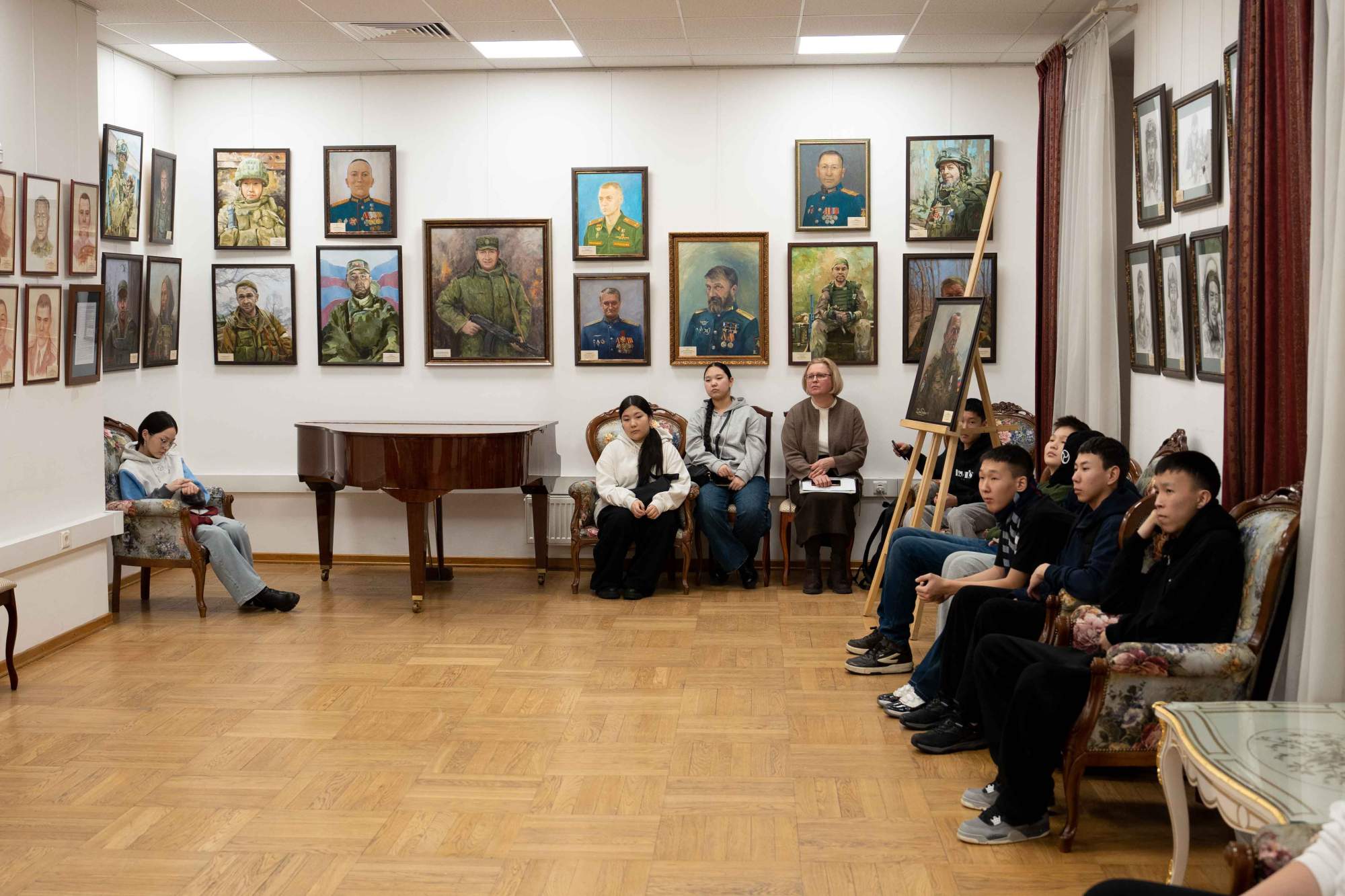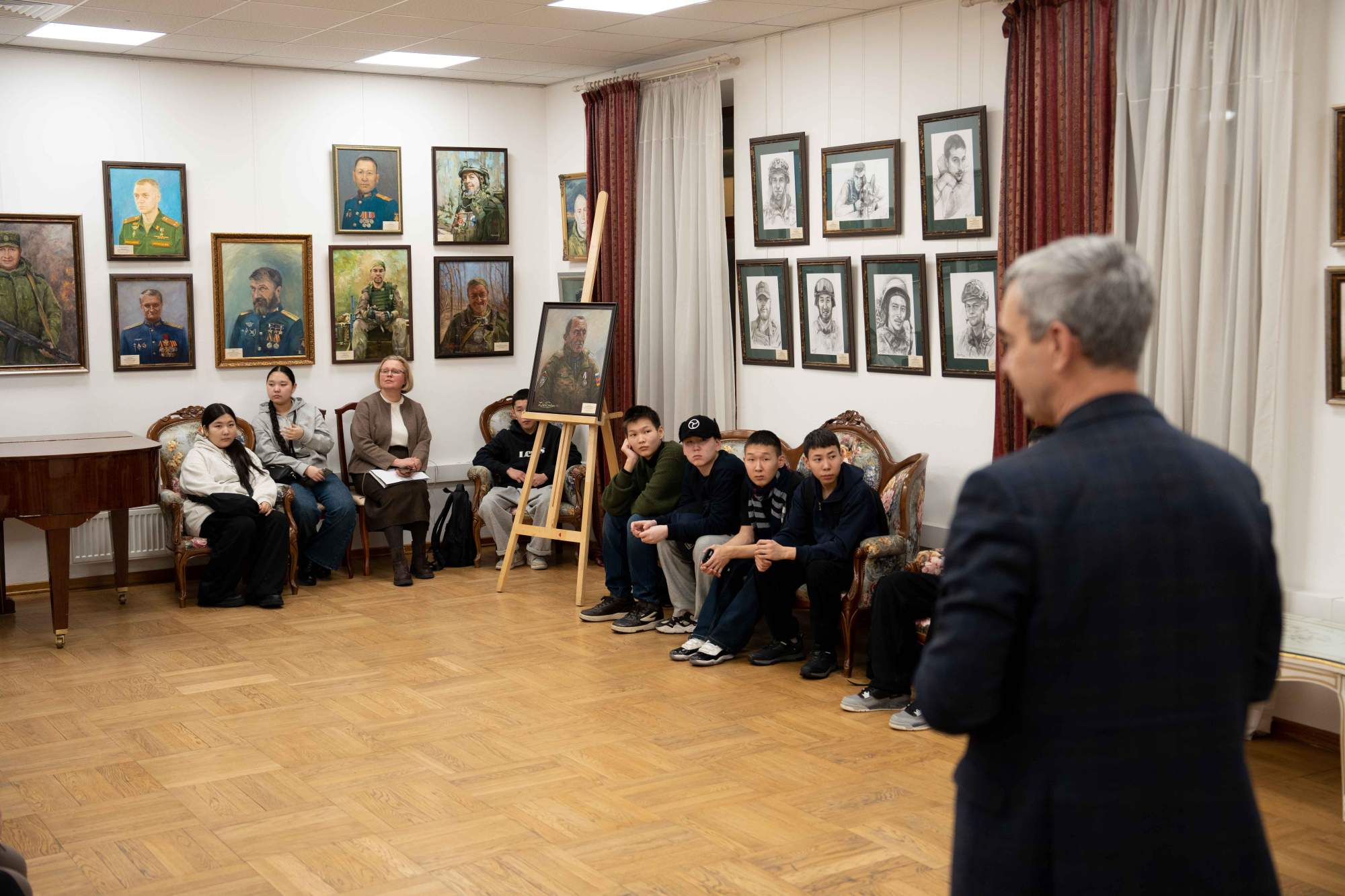 20 января 2026 Московский дом национальностей Общественное добровольческое движение «Волонтеры Саха» при АНО «Ресурсный центр добровольчества Республики Саха (Якутия). Экскурсия по выставке портретов героев специальной военной операции «Мужество. Отвага. Героизм» для старшеклассников Соттинской средней школы Усть-Алданского улуса Республики Саха (Якутия)