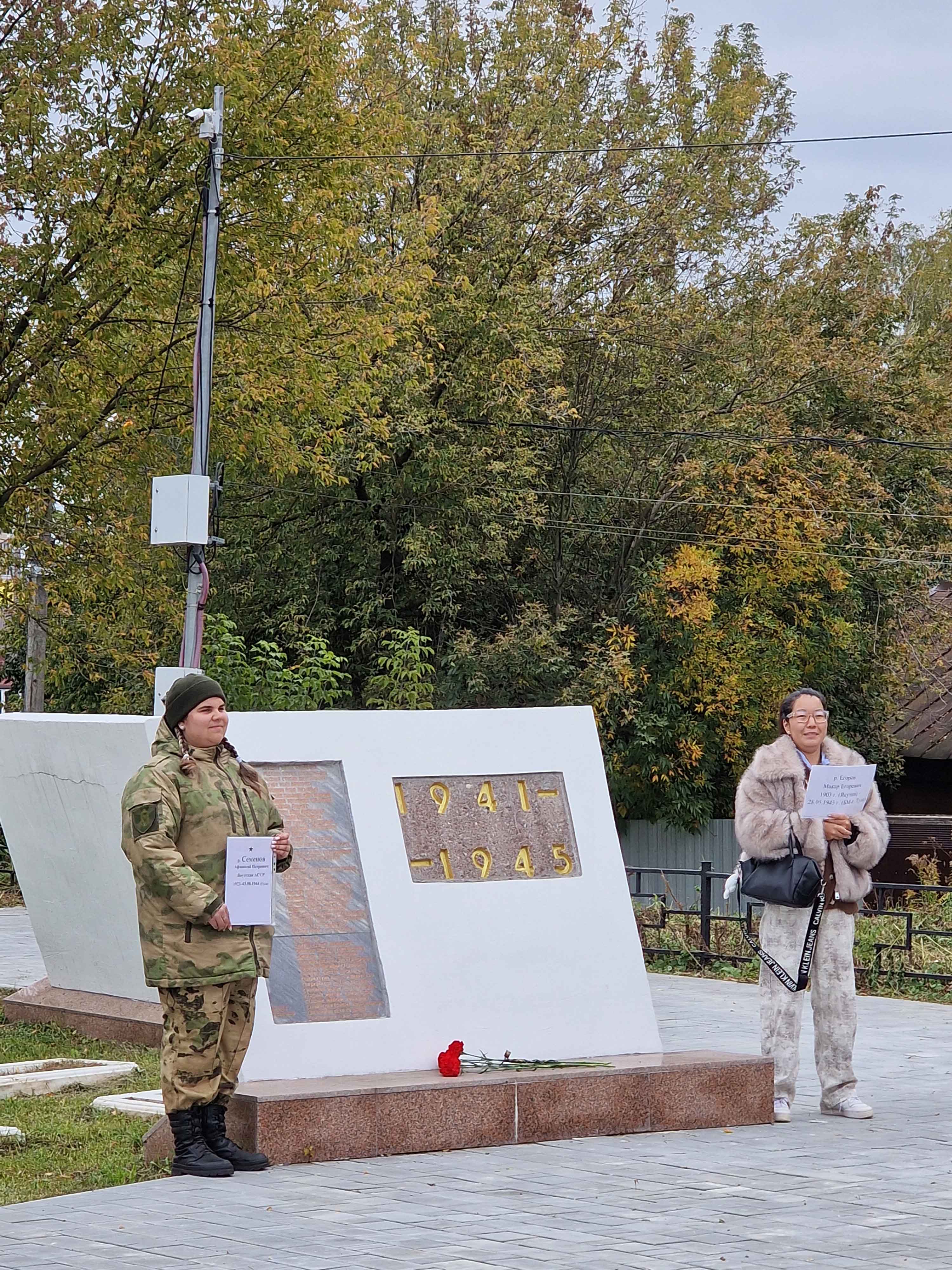 27 сентября 2025 года в г. Туле на Спасском кладбище прошла ставшая уже традиционной патриотическая акция у памятника воинам-якутянам, погибшим в годы Великой Отечественной войны на территории Тульской области.