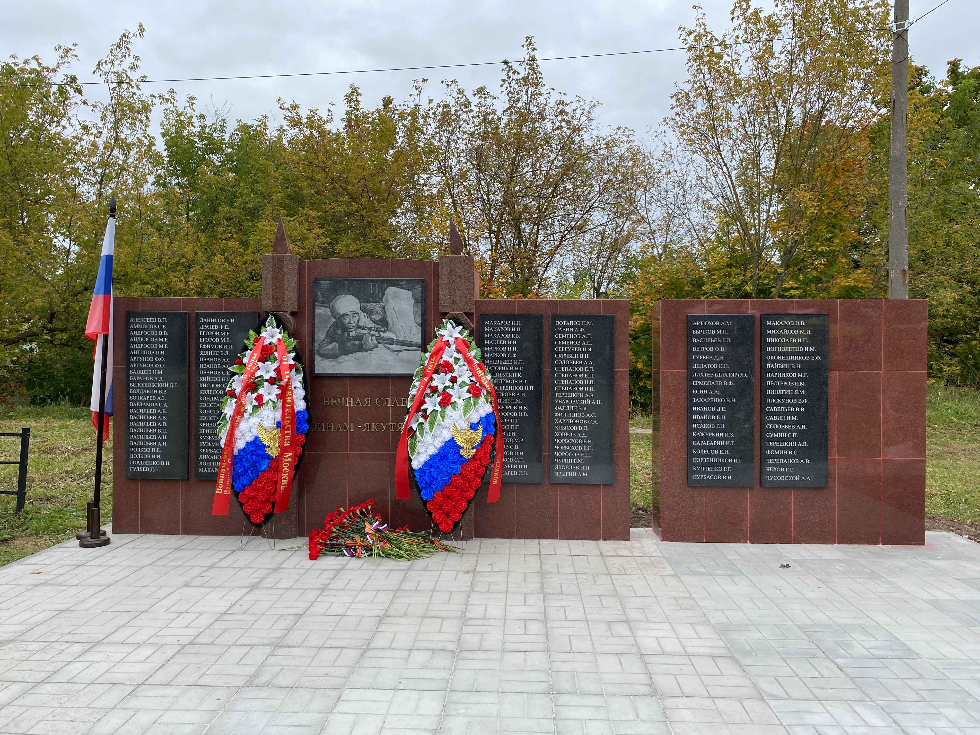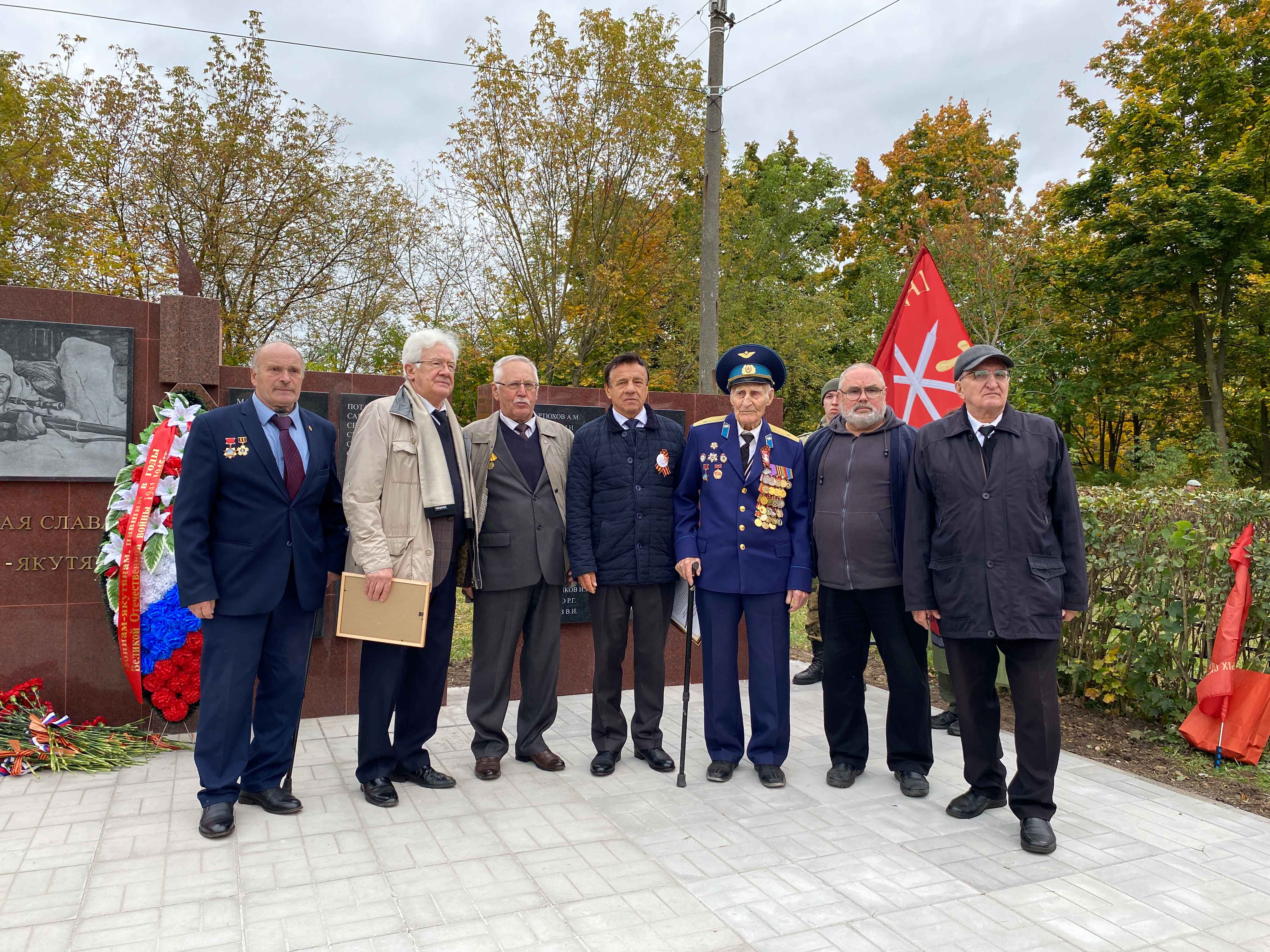 Памятник воинам-якутянам был установлен и открыт 23 июля 2022 года по инициативе Якутского землячества. Проект памятника подготовлен членом Союза художников России и Якутии Ю. А. Голиковым и исполнен тульской строительной компанией ООО «Первая каменная мануфактура» на средства личных пожертвований членов Якутского землячества и спонсорских средств предприятий, возглавляемых членами землячества. На мемориальной плите выбиты 96 имен славных якутских воинов – все они подтверждены документами из архива Минобороны России.