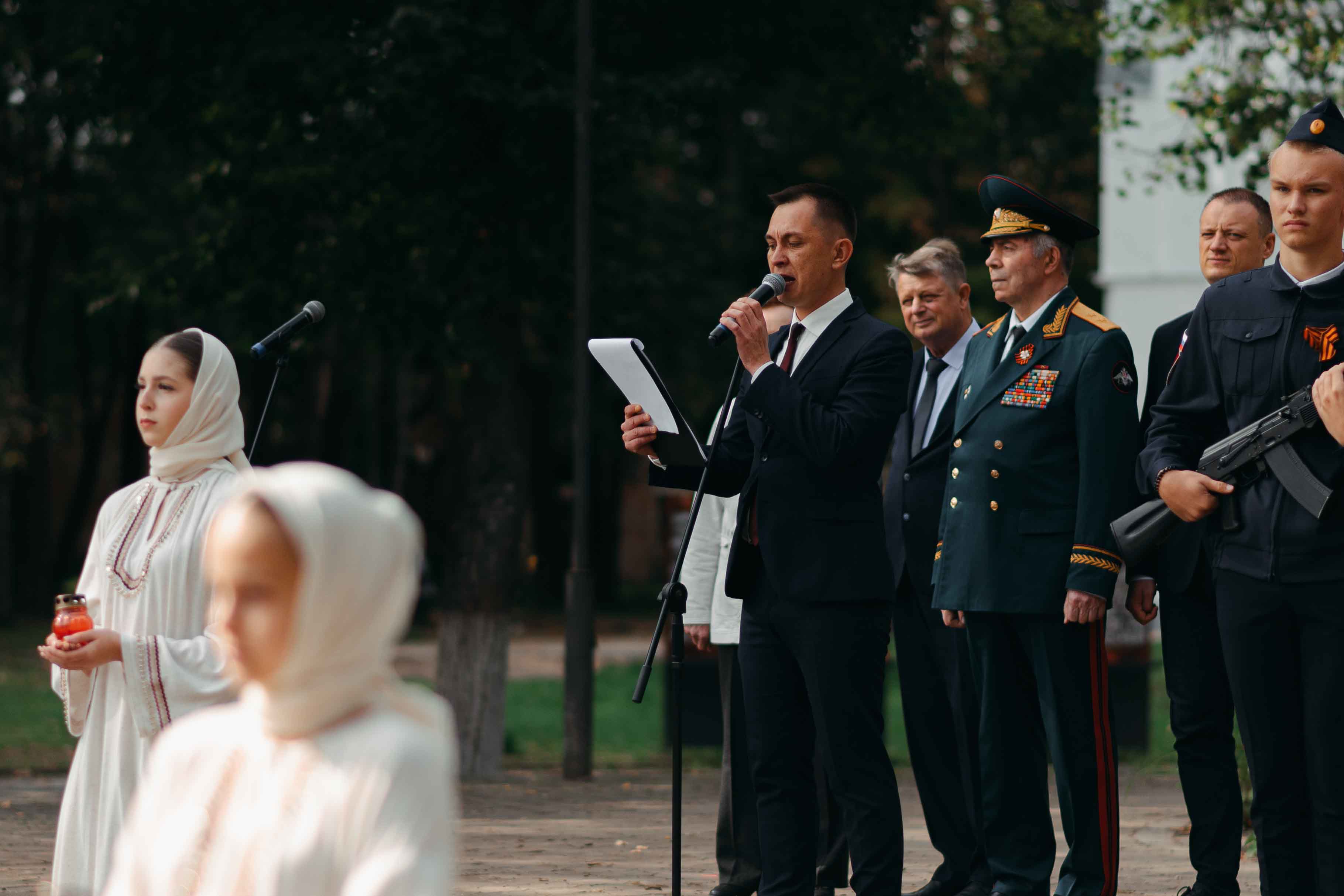 В ходе траурного митинга на мемориальном комплексе «Поле памяти» московская делегация приняла участие в церемонии возложения цветов. В рамках мероприятия состоялось захоронение останков 143 воинов, погибших при защите Отечества. Останки были обнаружены в ходе поисковых работ «Вахты Памяти-2025» на территории Ярцевского округа. Особое значение имеет тот факт, что у 10 из 143 воинов удалось установить личности. Это позволило не только достойно предать земле останки защитников Родины, но и сохранить память о конкретных героях для их потомков. О ходе работ рассказал Илья Николаевич Подколзин, командир поискового отряда «Высота» имени Дмитрия Сячина.