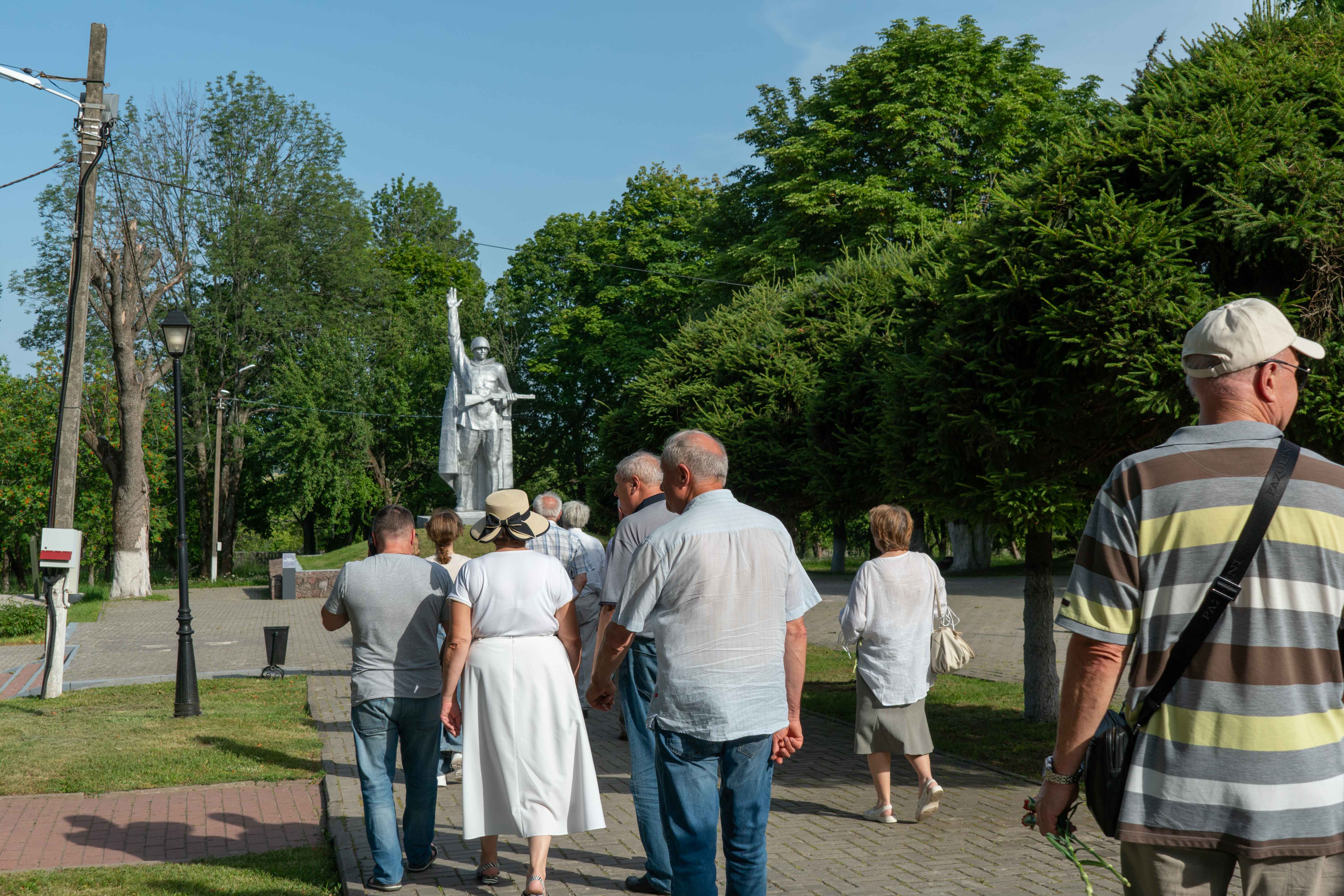 У мемориала участников встретил епископ Железногорский и Льговский Паисий. В храме Святых Первоверховных апостолов Петра и Павла был отслужен молебен с молитвой об упокоении воинов, павших в боях Великой Отечественной войны. Затем для делегации провели экскурсию, посвящённую сражениям на Орловско-Курской дуге и истории создания мемориала. Особое внимание привлёк памятник «Ангел мира» — первый объект комплекса, открытый 10 лет назад.