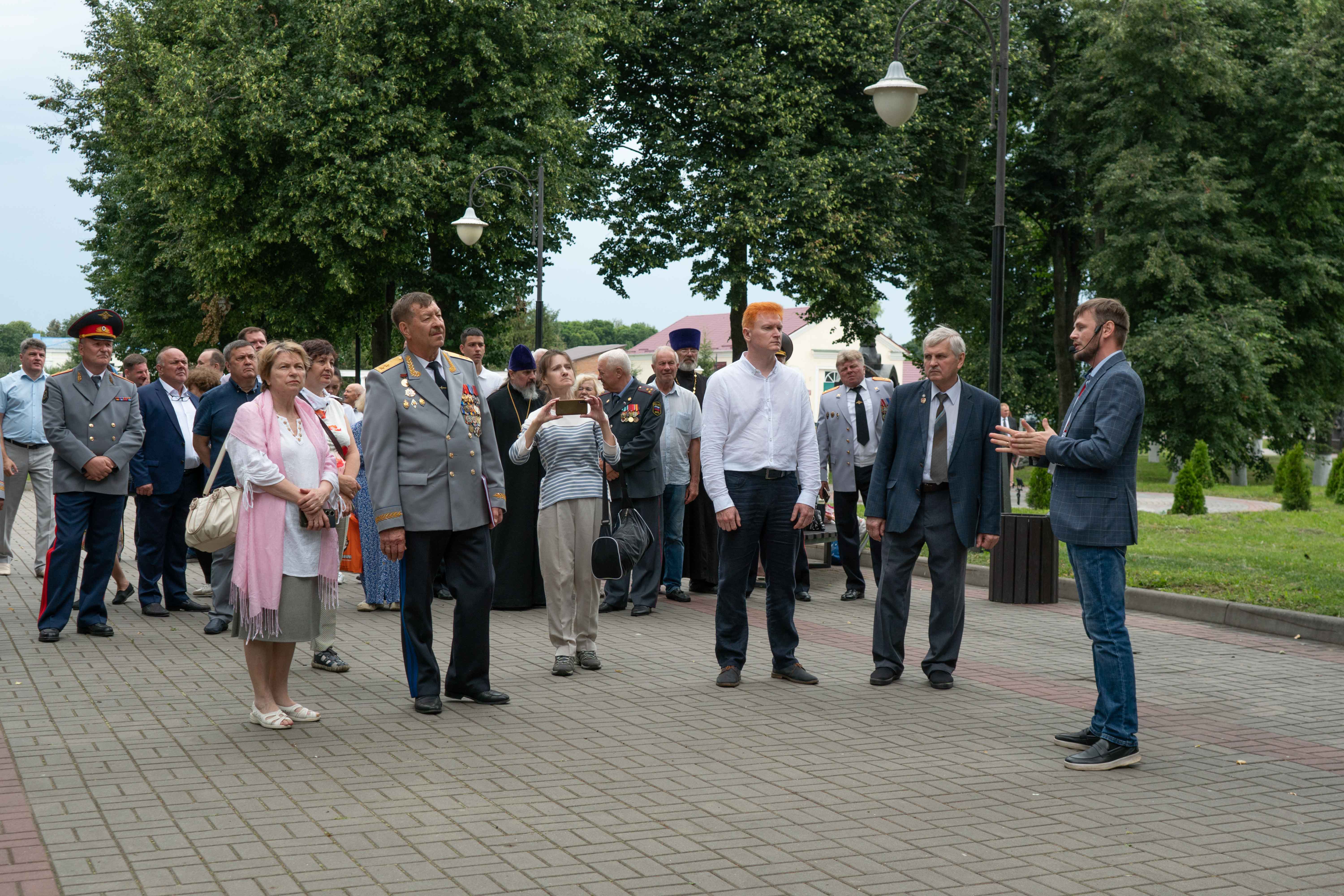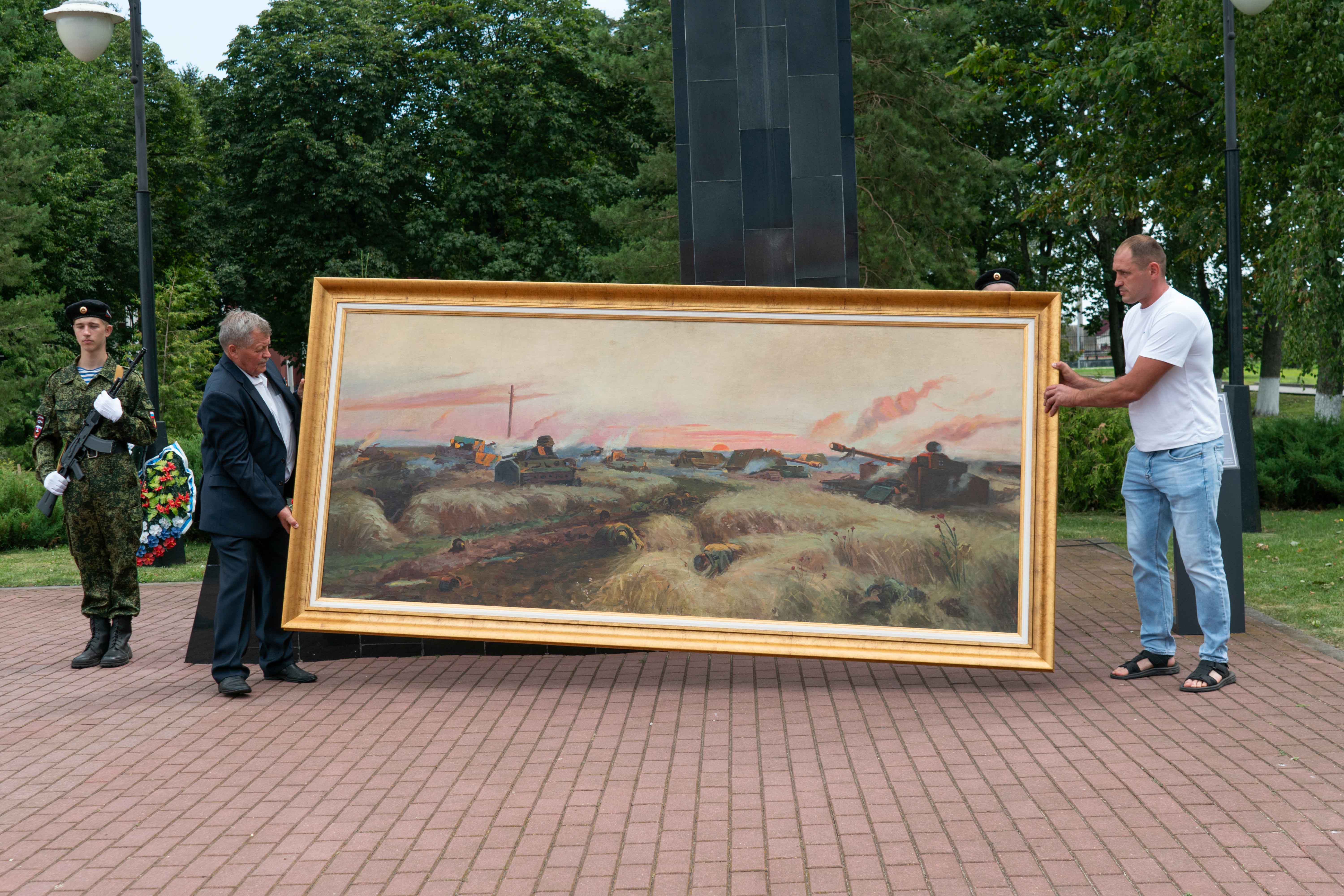 У мемориала участников встретил епископ Железногорский и Льговский Паисий. В храме Святых Первоверховных апостолов Петра и Павла был отслужен молебен с молитвой об упокоении воинов, павших в боях Великой Отечественной войны. Затем для делегации провели экскурсию, посвящённую сражениям на Орловско-Курской дуге и истории создания мемориала. Особое внимание привлёк памятник «Ангел мира» — первый объект комплекса, открытый 10 лет назад.