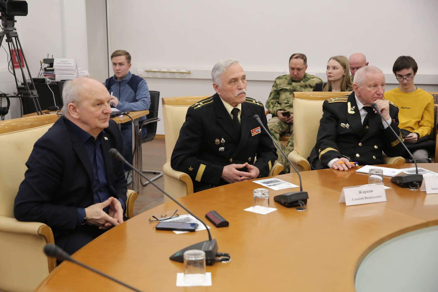 С видеопрезентациями об истории морской авиации и выдающихся лётчиках-героях выступили активисты Музея истории развития морской авиации имени Героя России Тимура Апакидзе ГБОУ города Москвы «Школа № 1383» (руководитель музея — А.А. Канцибер, председатель совета музея — М.В. Аксенова), лауреаты конкурсов Молодёжной программы «Нахимовская ленточка».