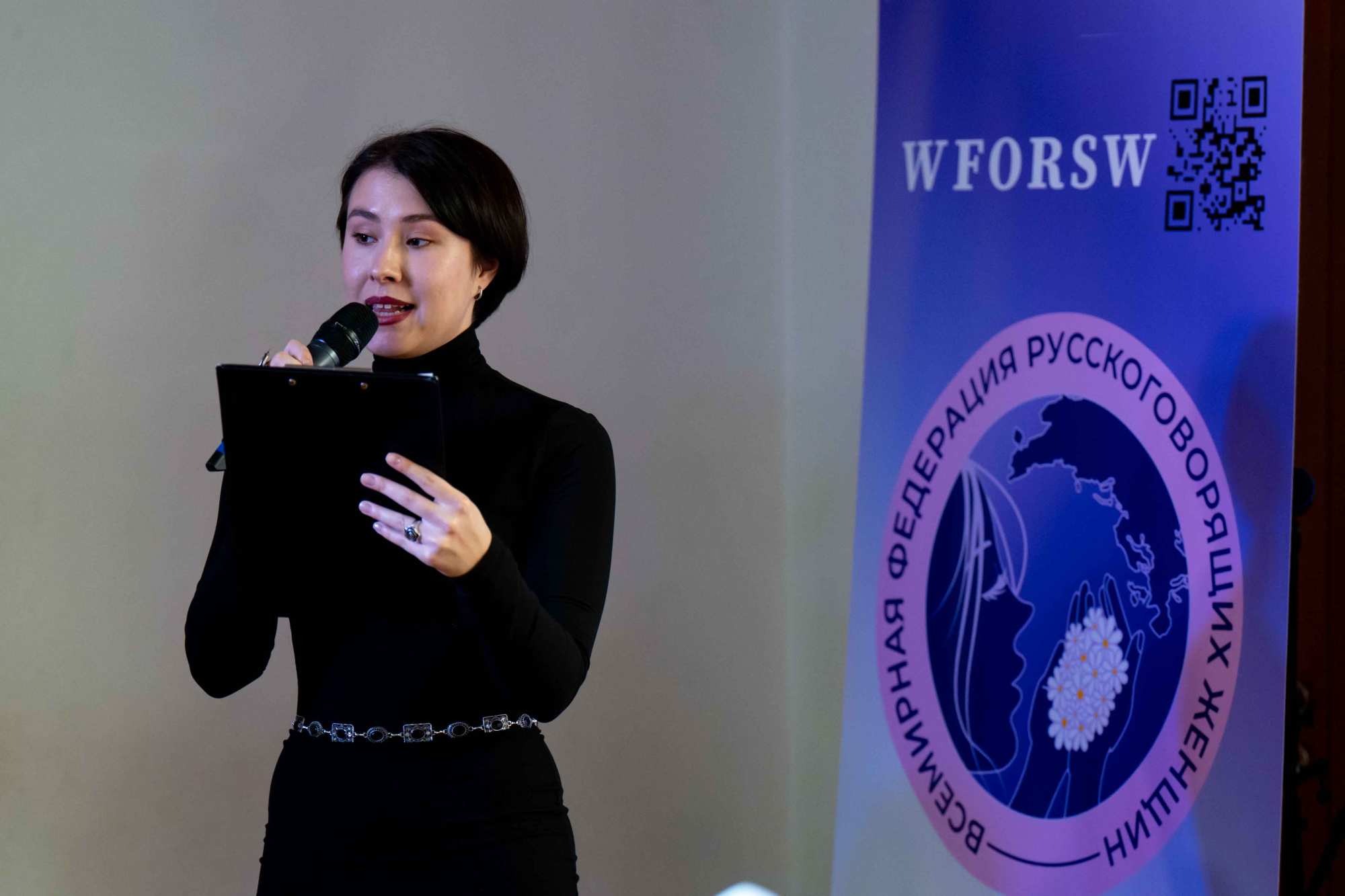 и их роль в современных общественных процессах». В мероприятии приняли участие русскоговорящие женщины из разных стран, представители органов государственной власти Российской Федерации, эксперты в области международных отношений, культуры и истории, учащиеся учебных заведений города Москвы, а также приглашенные гости. Модератором мероприятия выступила Афанасьева Елена Владимировна, сенатор Российской Федерации, президент Всемирной федерации русскоговорящих женщин. Всемирная федерация русскоговорящих женщин – это международное сообщество, главной целью которого является консолидация женщин, говорящих на русском языке, для защиты общих духовных, культурных и исторических ценностей, взаимоподдержки и реализации социально значимых инициатив по всему миру. Главная  тема встречи в 2025 году — «Женщина — Защитница Отечества». В фокусе обсуждения — многогранная роль женщины в современном мире: от волонтерства и благотворительности до защиты исторической памяти, сохранения культурных традиций, а также прав женщин и детей. На конференции выступили: сенатор Российской Федерации Абрамов Иван Николаевич, члены Всемирной федерации русскоговорящих женщин из Франции, Аргентины, Таиланда, Южной Кореи, Японии, Казахстана, Словакии, Индии