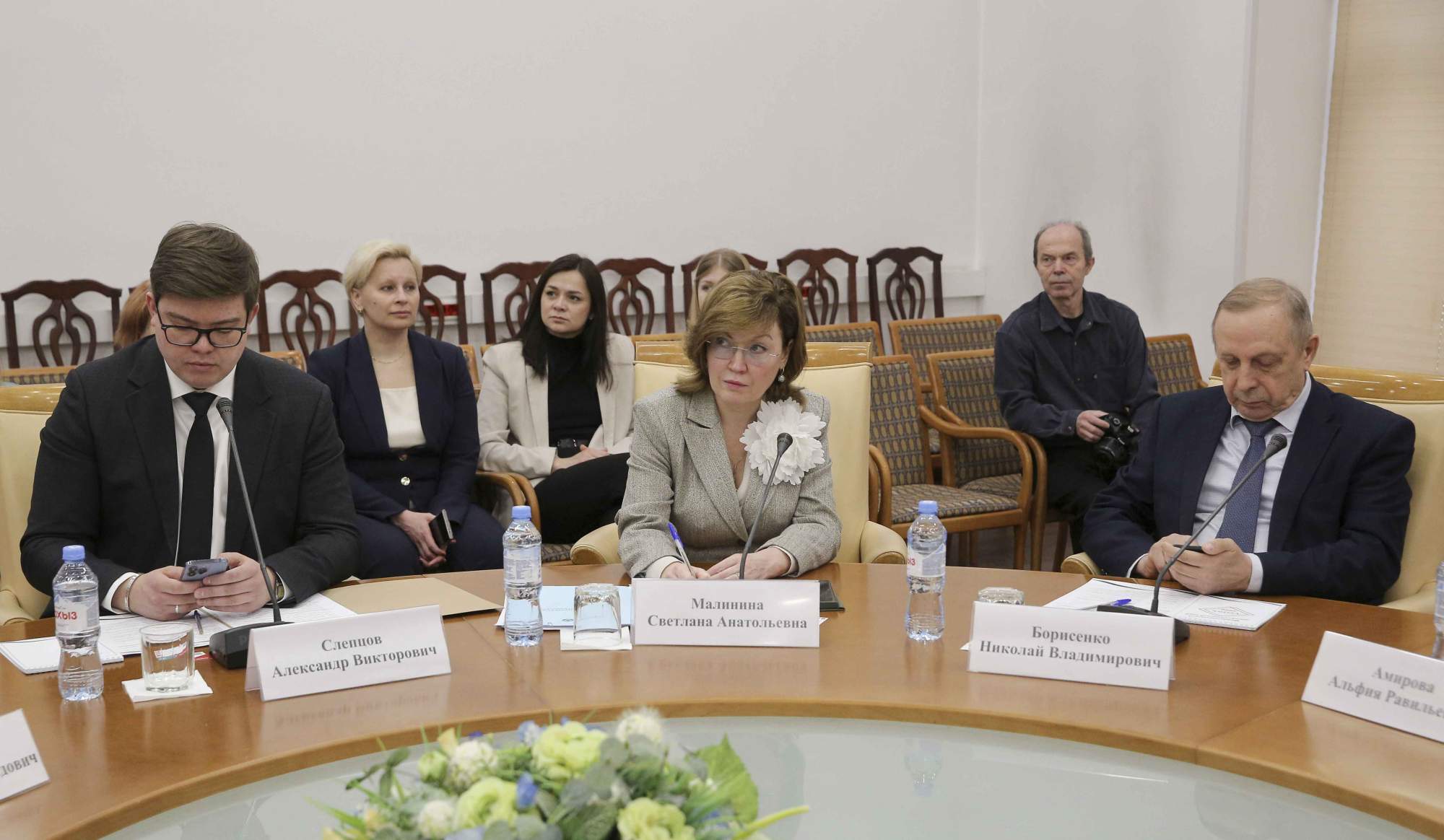 С приветственными словами к участникам обратились парламентарии. В связи с плотным графиком работы в Государственной Думе, депутаты направили официальные приветственные адреса, которые были зачитаны Амировой А.Р. в ходе открытия заседания. Виктория Сергеевна Родина — депутат Государственной Думы Федерального Собрания Российской Федерации в своем обращении отмечает: «Принимать участие в формировании базового понимания желаемых результатов государственной политики по сохранению и укреплению традиционных российских духовно-нравственных ценностей значит брать на себя ответственность за выстраивание приоритетов, за создание эффективной системы наставничества, за сохранение нематериального культурного наследия в целом. Уверена, что это по плечу нашим активным и целеустремленным женщинам». Анастасия Олеговна Удальцова — депутат Государственной Думы, в приветствии подчеркнула особую ценность комплексного подхода к обсуждению роли женщин-лидеров в культуре, бизнесе и общественной дипломатии: «Сохранение исторической памяти, передача опыта в предпринимательских династиях и укрепление связей с соотечественниками за рубежом — это те задачи, которые требуют системного диалога и объединения усилий».