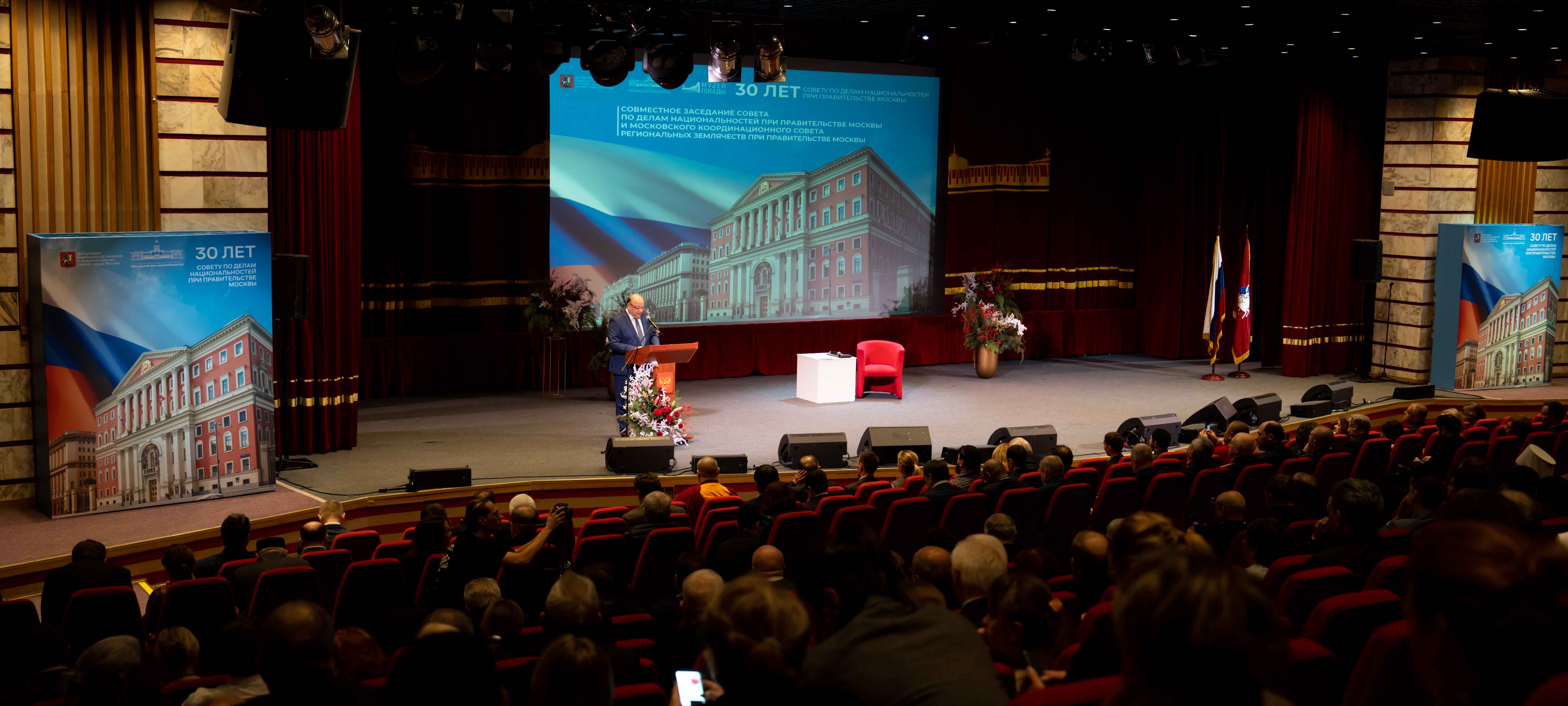Генеральный директор Общероссийской общественно-государственной организации «Ассамблея народов России» Александр Даркович в приветствии особо выделил: «Тридцать лет – это по-настоящему долгая история. Это путь, который Совет прошел, успешно адаптируясь к изменениям в стране. Это серьезный рубеж для структуры, которая оперативно решает проблемы, возникающие в сфере национальной политики, содействует формированию гражданского общества путем эффективного взаимодействия органов власти и национальных общественных институтов. Совет развивает многонациональный диалог и объединяет усилия национальных общественных объединений, экспертного сообщества и средства массовой информации в деятельности по гармонизации многонациональных отношений в столице и в целом по стране. Сегодня для всех комиссий Совета основным направлением деятельности стали социально значимые вопросы: сохранение традиционных ценностей и обеспечение многонационального согласия, гармонизация этнических и межконфессиональных отношений, профилактика экстремизма, воспитание культуры многонационального общения в молодежной среде. Участвуя в решении стратегических задач по воплощению в жизнь плана реализации национальной политики города Москвы, Совет стал воистину эффективной площадкой конструктивного обмена мнениями как представителей власти, так и общественности, экспертов».