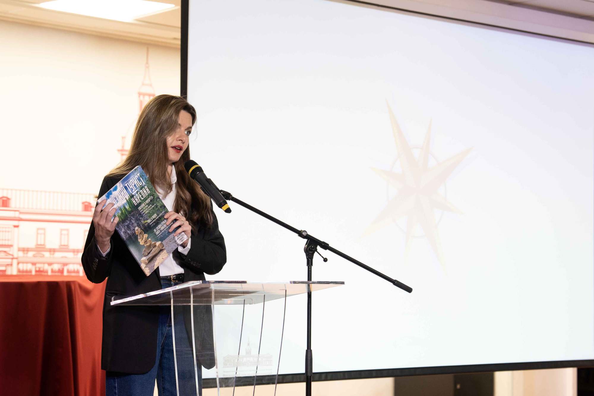 Участников и гостей торжественного открытия выставки и презентации печатного выпуска журнала «Русский турист» — «Карелия: сказания в маршрутах» поприветствовал директор Московского дома национальностей Сергей Сергеевич Ануфриенко. В рамках мероприятия так же  состоялась экскурсия по выставке от Владимира Зорина – председателя Карельского регионального отделения Всероссийской творческой общественной организации «Союз художников России». Среди участников экспозиции – художники, чьи имена известны далеко за пределами республики: Александр Трифонов с его глубоким философским взглядом на мир; Олег Юнтунен, передающий в графике суровость северного края; Виктория Зорина с яркими, фантастическими, праздничными мирами Карелии; Аркадий Морозов, рисующий философские притчи о северной деревенской жизни. Герои «Калевалы» оживают в произведениях Владимира Лукконена, Владимира Зорина и Бориса Акбулатова, а лирические офорты Ольги Юнтунен рассказывают о местах и людях — наследниках этого легендарного карельского эпоса. «Карельские мифы» — это погружение в современное искусство Карелии, где древние сказания находят новое видение, а традиции оборачиваются свежими художественными открытиями.