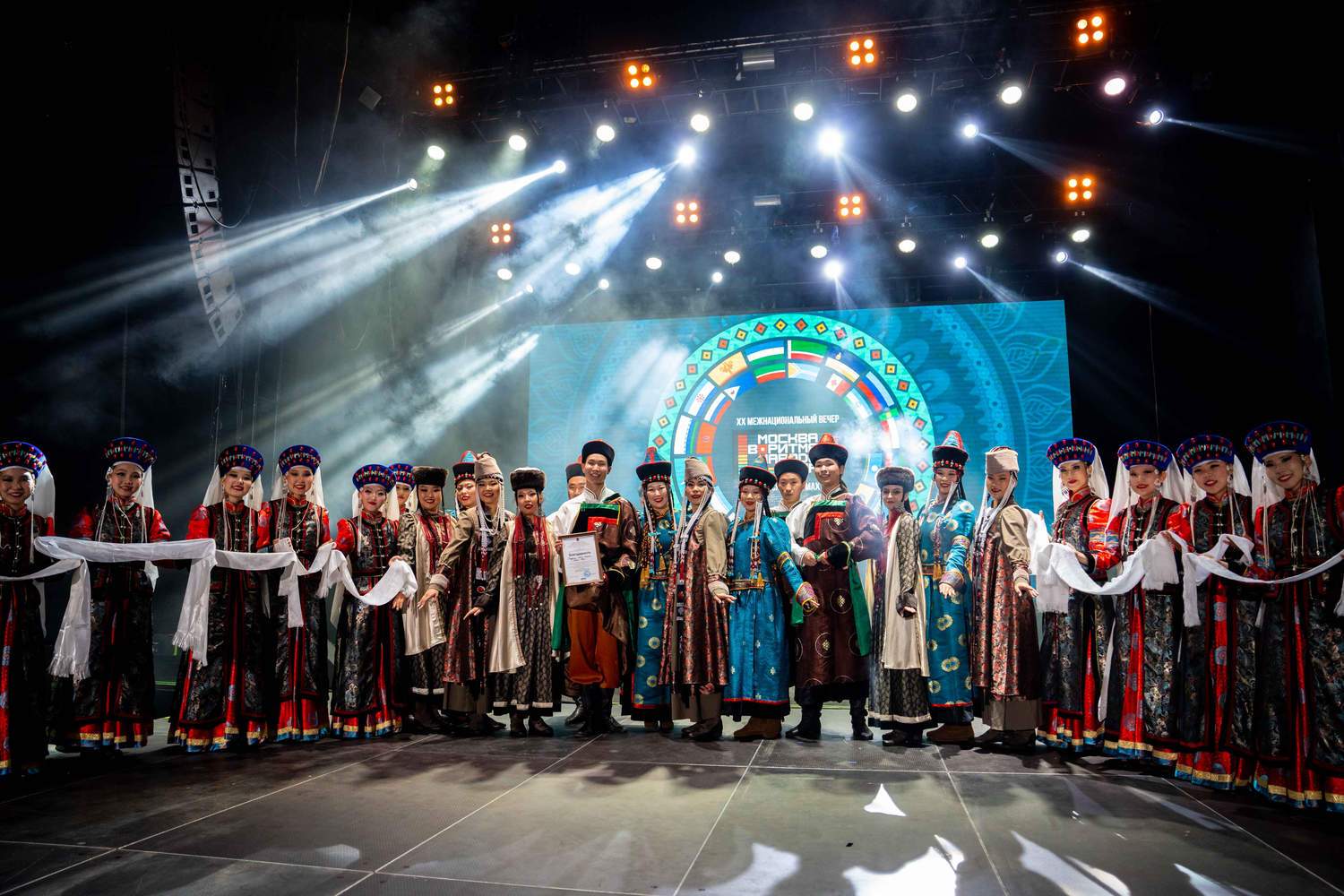 Экватором межнационального вечера стала церемония награждения победителей Молодежной интеллектуальной лиги Московского дома национальностей, которые внесли большой вклад в укрепление межнационального мира и согласия и принимали активное участие в проектах и мероприятиях отдела по работе с молодежью ГБУ «МДН». Среди команд победителями стали: «Алтайские мотивы» (Землячество уроженцев Республики Алтай); «Гуламта» (Бурятское студенческое объединение «Гуламта»); «Агидель» (РОО содействия культурному развитию башкирского народа «Курултай (конгресс) башкир»). Церемонию награждения провели начальник отдела по работе с молодежью Государственного бюджетного учреждения города Москвы «Московский дом национальностей» Саломея Тенгизовна Аблотия и начальник отдела по организации общегородских и межнациональных мероприятий Московского дома национальностей Михаил Ильич Вьюев.