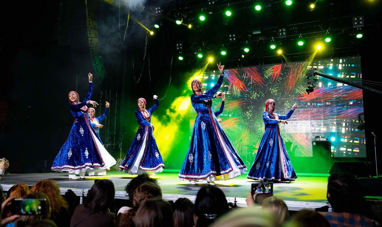 Программу мероприятия продолжили зажигательные выступления этнических коллективов. В сопровождении яркого тематического видеоряда на сцене своё искусство продемонстрировали: марийский рэпер Шып лий feat и Митя Наити с композициями «Йошкар-Ола» и «Пеледыш пайрем»; этно-рок группа сочетающая армянский фолк с элементами прогрессивного рока «JAN-e-JAN» выступила с песнями «Ai Sarin» и «Na Mi Naz Uni»; коллектив индийского танца «Амритсар Проджект»; Эллина Лазаревой и ансамбль «WARUM БЫ И NICHT» с композицией «Federkleid»; московский танцевальный коллектив «Арго» с танцем «Горский танец»; группа, соединяющая молдавский фольклор, альтернативный рок и современную этническую музыку «Ielele». Основная программа вечера завершилась выступлением солиста Москонцерта, Ильи Ушуллу с песней «Лучший город земли».