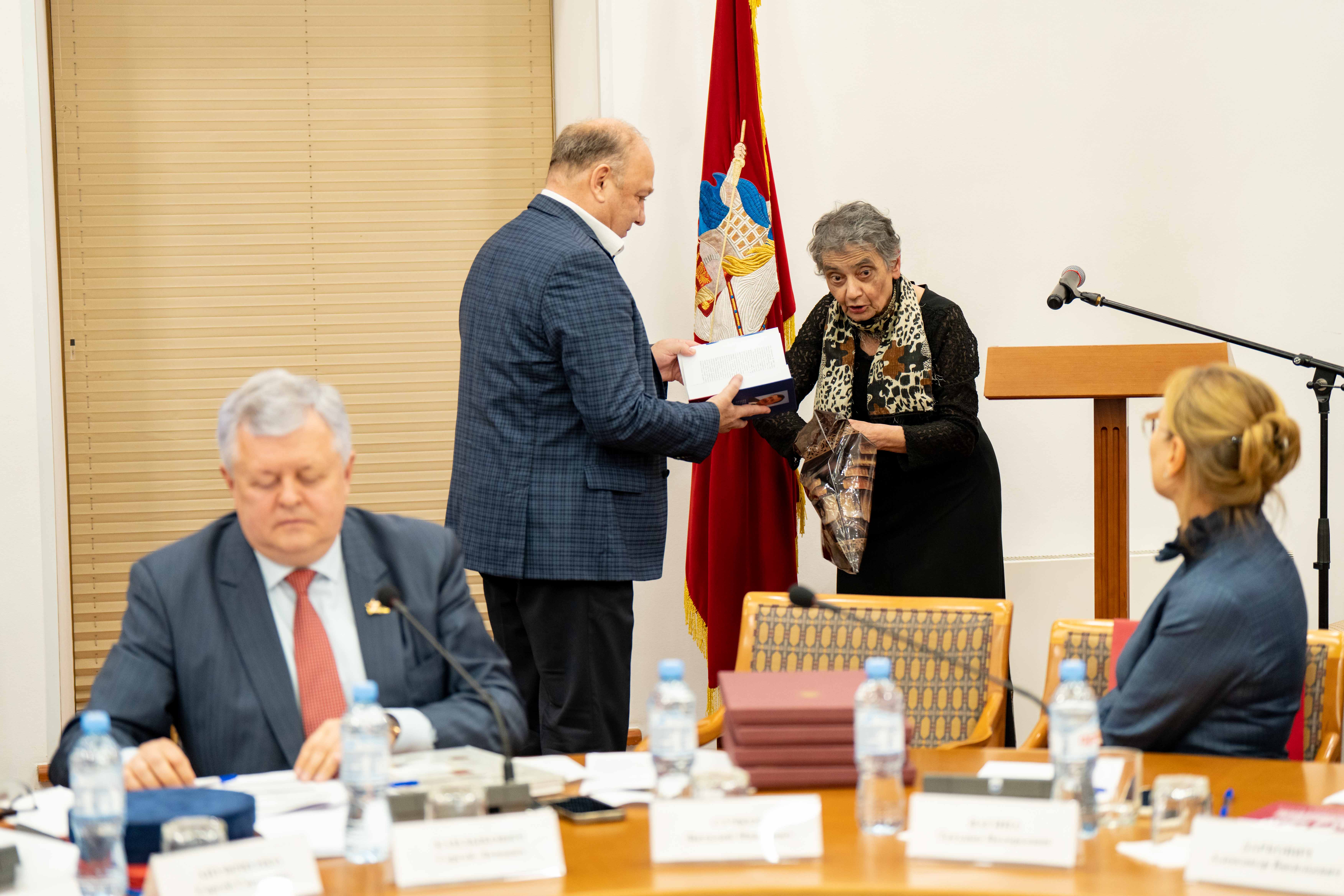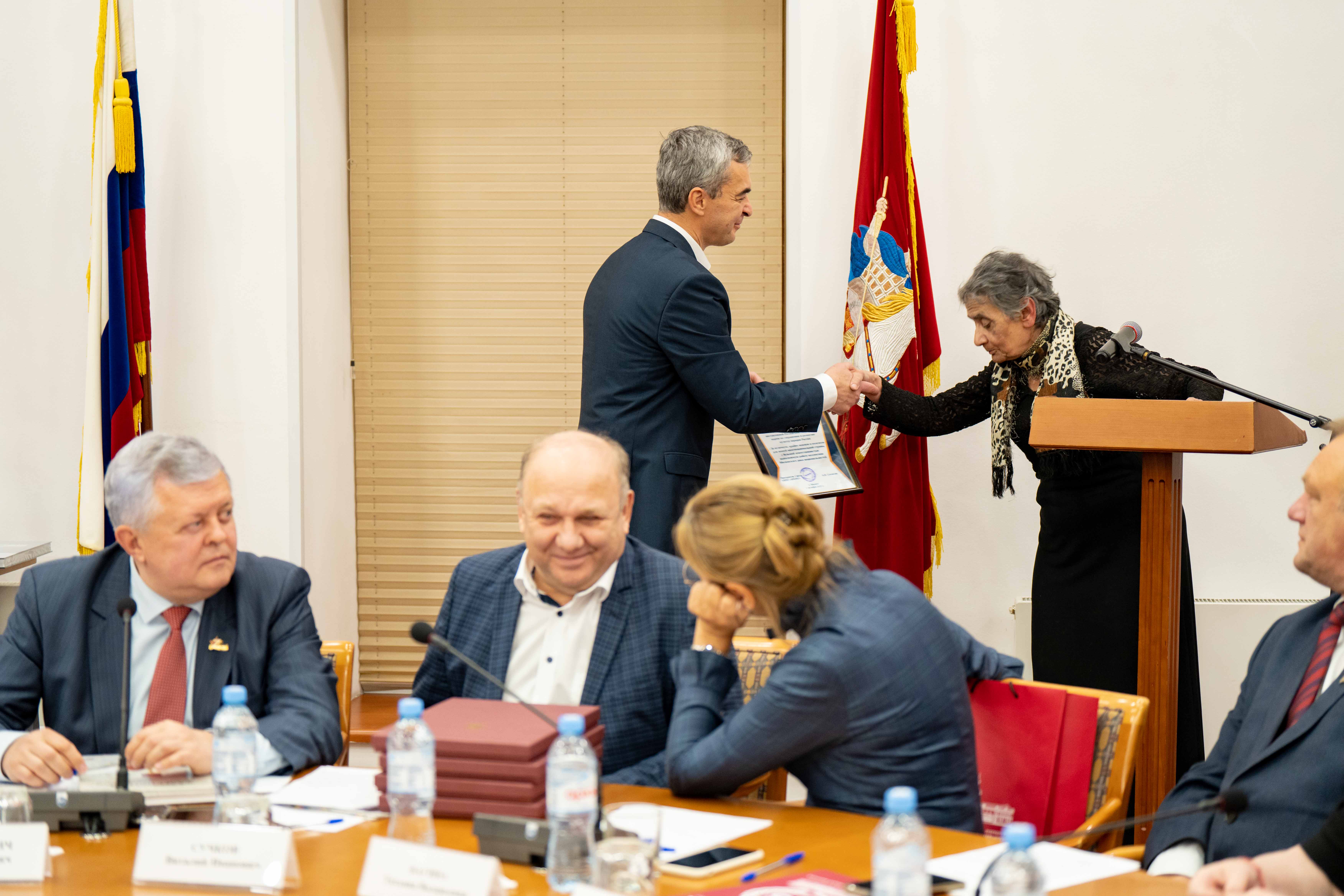 В рамках заседания член Общественного совета при ГБУ «МДН», председатель Комиссии по межнациональным, межрелигиозным отношениям и миграции Общественной палаты Российской Федерации Владимир Юрьевич Зорин отметил благодарственными письмами от представляемой общественной структуры за активную гражданскую позицию и большой личный вклад в этнокультурное развитие и укрепление единство народов России: Батора Дугаровича Дугарова, Хуршеду Давроновну Хамракулову, Мадину Раисовну Ильгамову и Петра Ивановича Акаемова.
