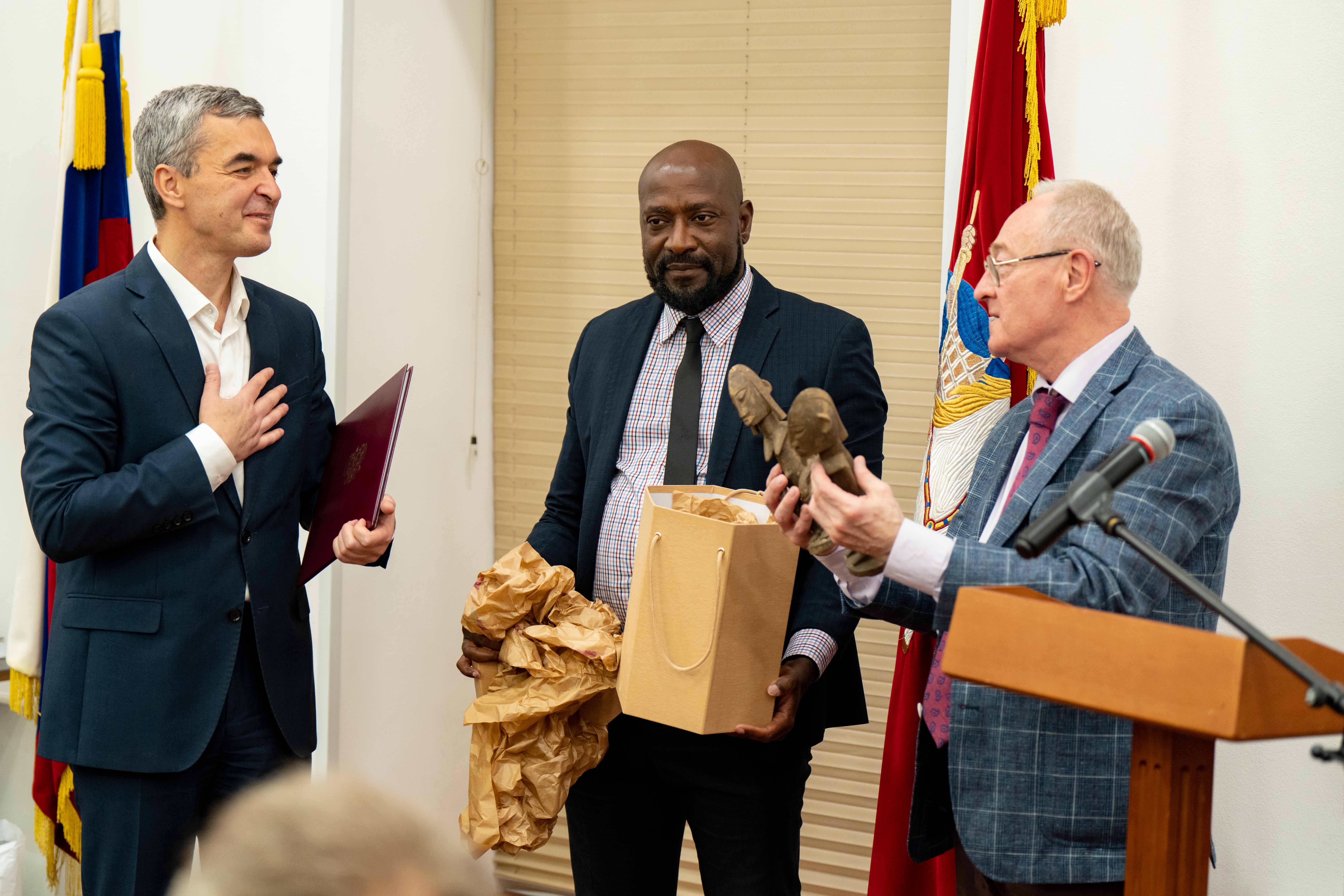 С поздравлениями также выступили: советник директора Федерального государственного бюджетного учреждения «Дом народов России» Мехрибан Эльдаровна Садыгова; генеральный директор Общероссийской общественно-государственной организации «Ассамблея народов России», Герой России Александр Васильевич Даркович; первый заместитель Генерального секретаря — руководитель Генерального секретариата Международного союза неправительственных организаций «Ассамблея народов Евразии», председатель Совета Общероссийской общественной организации «Ассамблея народов России» Светлана Константиновна Смирнова; председатель Комиссии по нормативным правовым инициативам и связям с органами местного самоуправления Совета по делам национальностей при Правительстве Москвы председатель Совета Землячеств выходцев из Украины, сопредседатель Союза нации народов России Николай Иванович Лях; член Общественного совета при ГБУ «МДН» председатель правления МОО «Карельское Содружество» Владимир Сергеевич Головачев; член Общественного совета при ГБУ «МДН», вице-президент общероссийской общественной организации «Союз армян России» Левон Альбертович Муканян; председатель Координационного совета Региональной общественной организации содействия сохранению этнокультурных традиций женщин «Форум женщин ЕврАзии» Раушан Мусахановна Канапьянова; Постоянный Представитель Республики Ингушетия при Президенте РФ — Первый заместитель Председателя Правительства Республики Ингушетия Михаил Бангирович Илезов; председатель Комиссии по этнокультурному развитию Совета по делам национальностей при Правительстве Москвы Хуршеда Давроновна Хамракулова; заместитель председателя Региональной общественной организации «Якутское землячество» Людмила Васильевна Павлова; первый заместитель Постоянного представителя Республики Саха (Якутия) при Президенте Российской Федерации Александр Дмитриевич Сафронов; председатель Совета Региональной общественной организации «Армянское культурно-просветительское общество «Арарат» Альбина Нерсесовна Сукиасян; председатель Комиссии по физической культуре и спорту Совета по делам национальностей при Правительстве Москвы Батор Дугарович Дугаров; председатель Региональной общественной организации «Национально-культурная автономия «Белорусы Москвы» Алла Анатольевна Тужилкина; президент Некоммерческого партнерства «Русско-Индийское Общество Дружбы «Диша» Сингх Рамешвар.